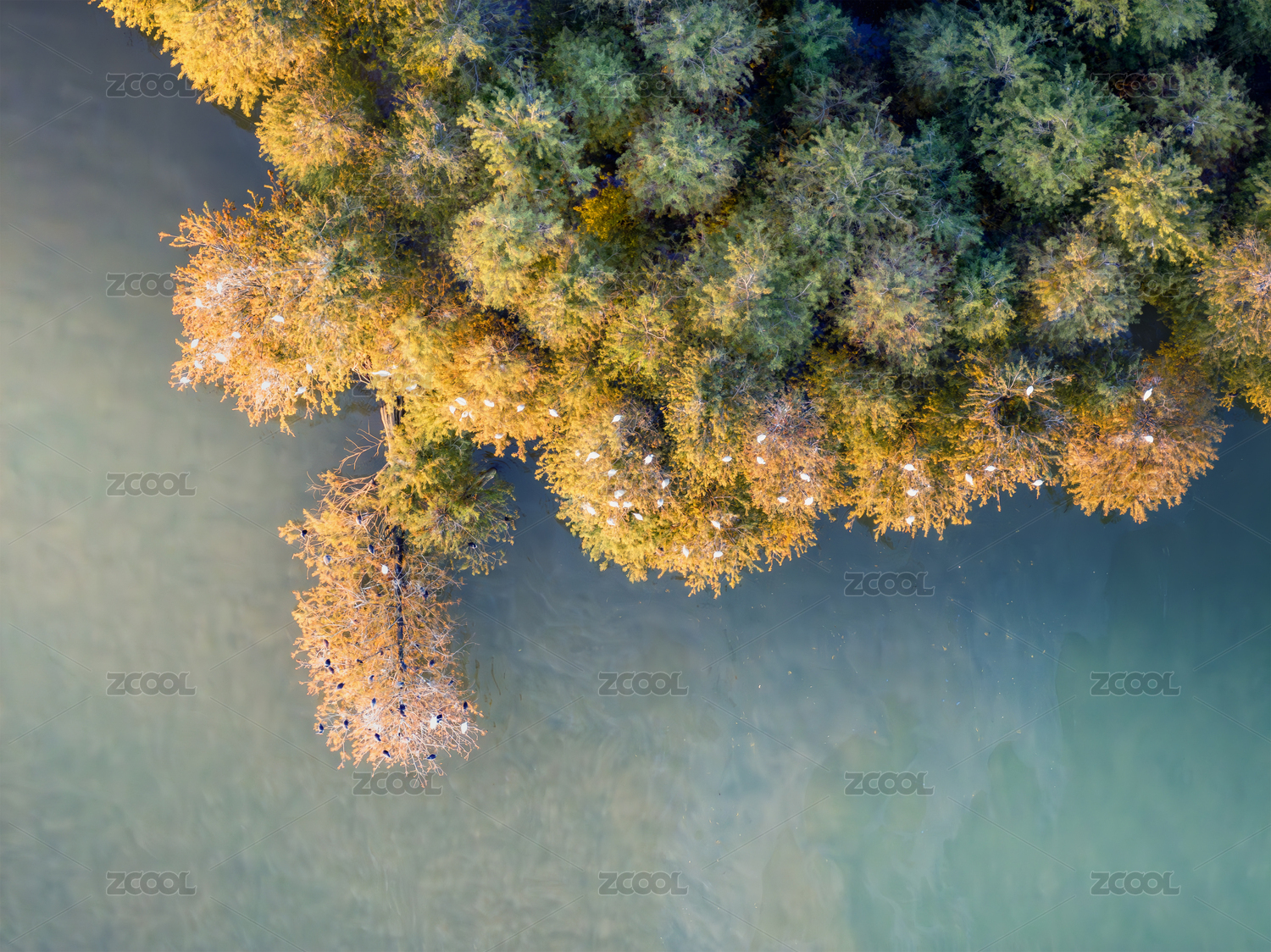 广东省中山市长江水库内的秋色水杉林
