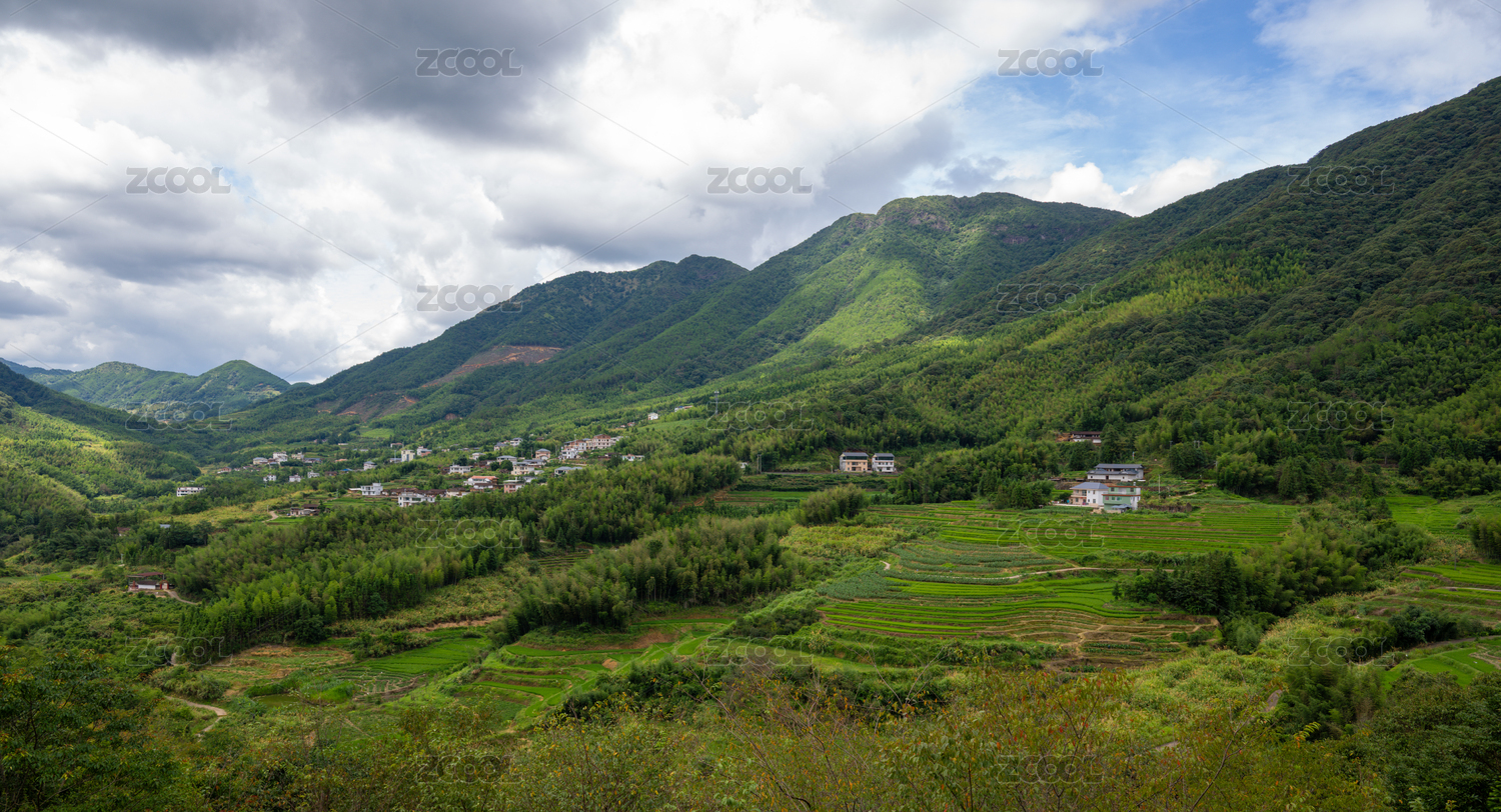 福建漳州华安县福田村青山绿水间的乡村风光