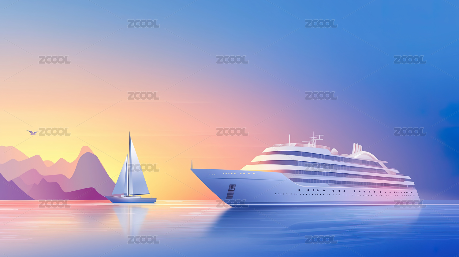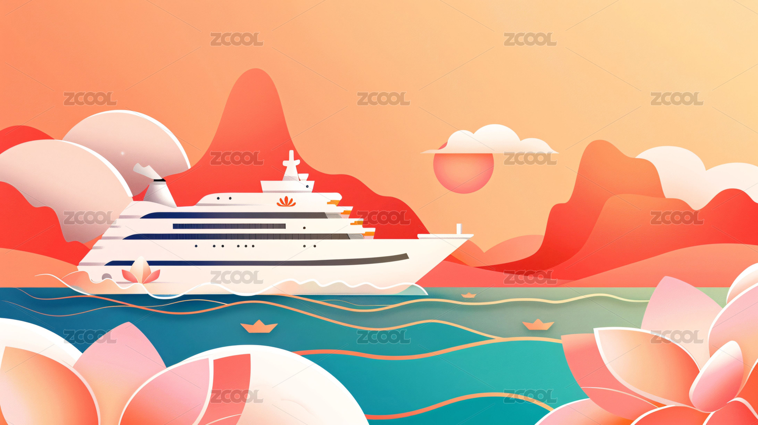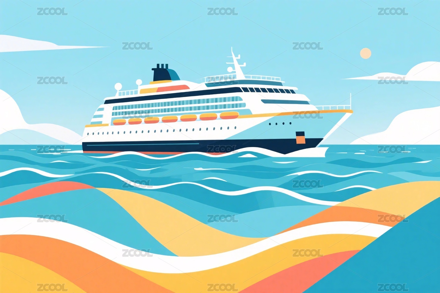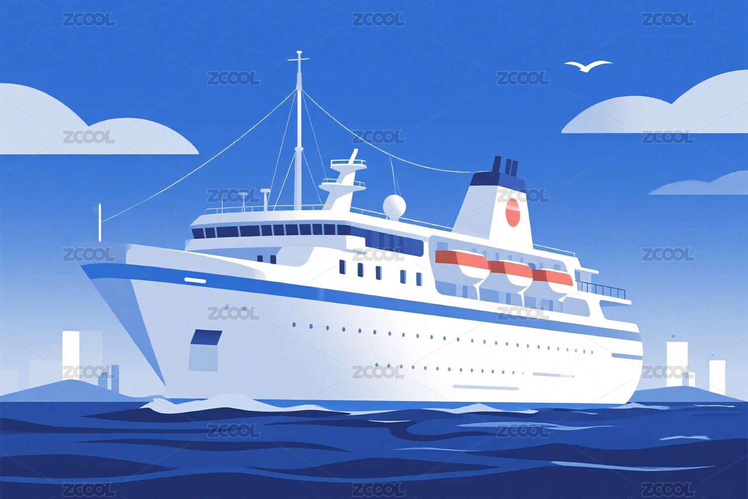 国庆假日出发旅游卡通豪华轮船交通运输插画