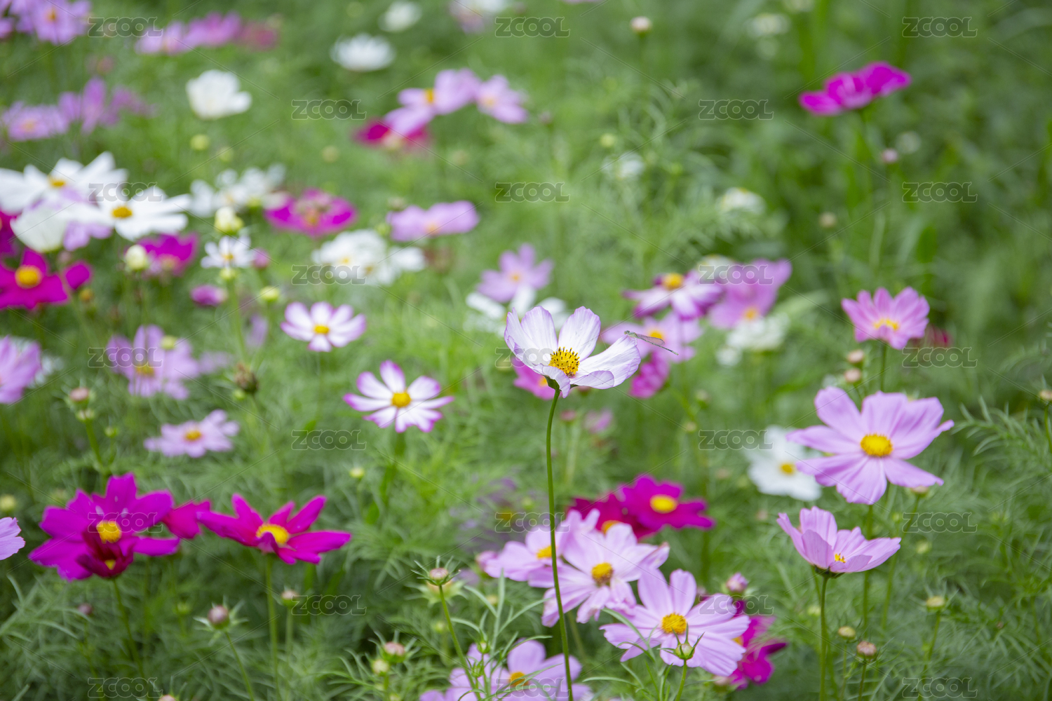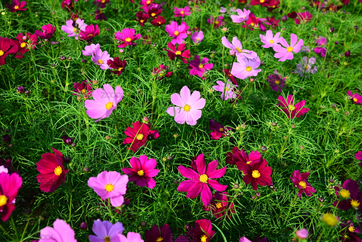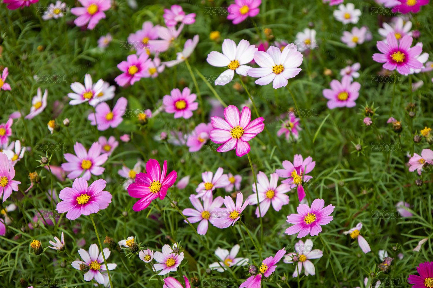 一大片波斯菊花卉特写