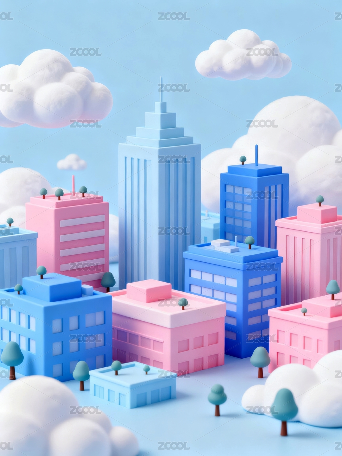 金融城市蓝天白云3D插画