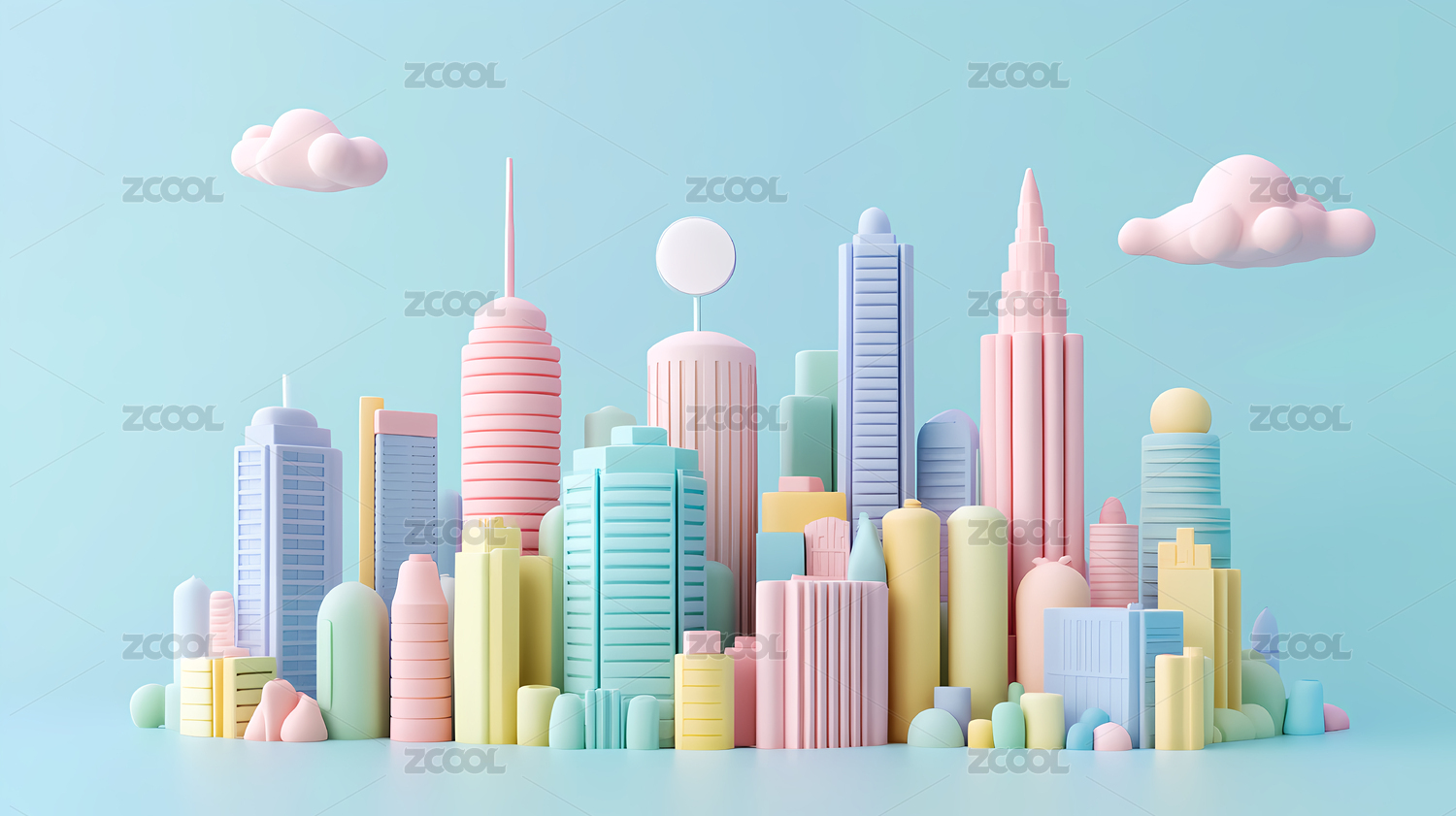 彩色3D卡通城市天际线