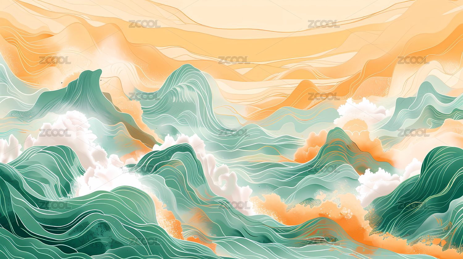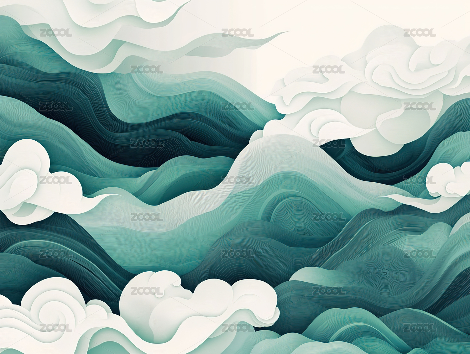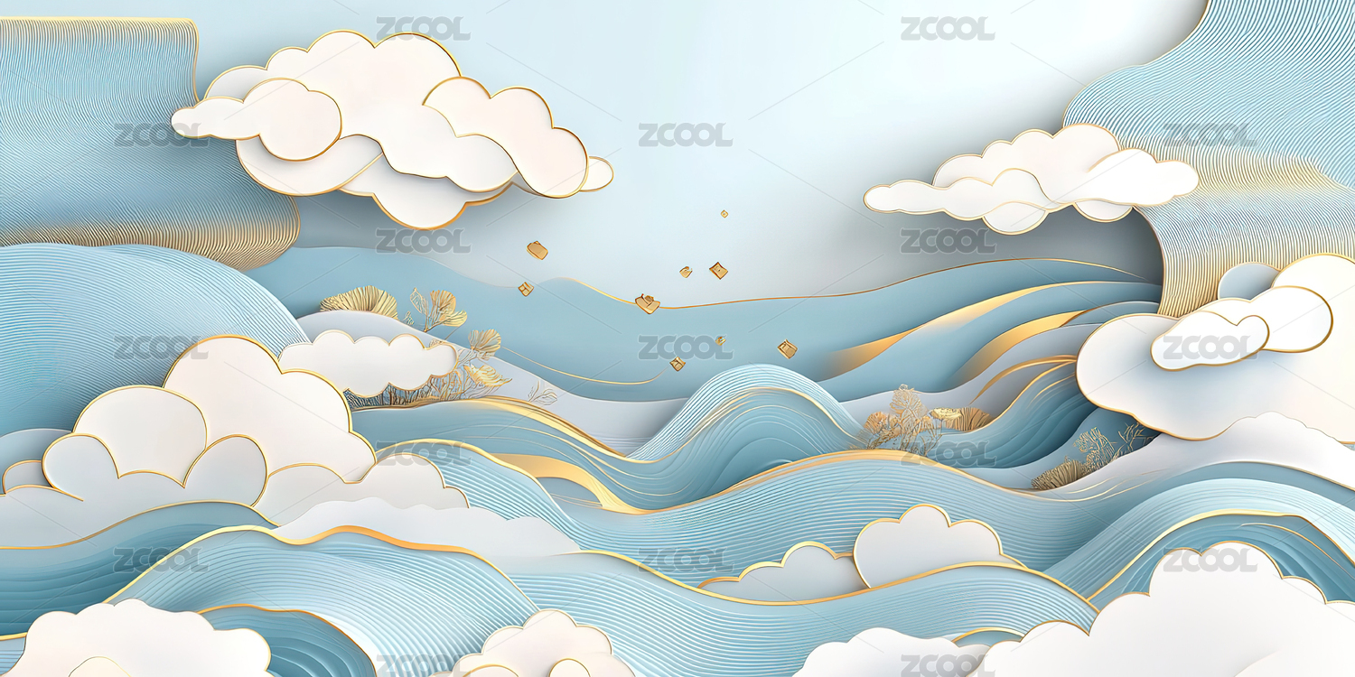 传统中国元素的祥云和海浪纹理艺术背景