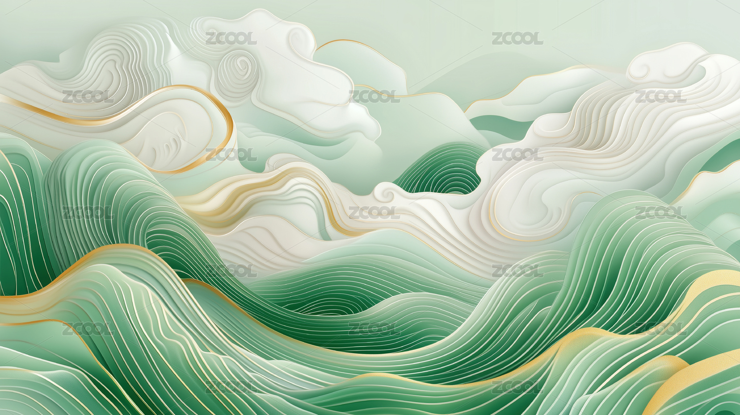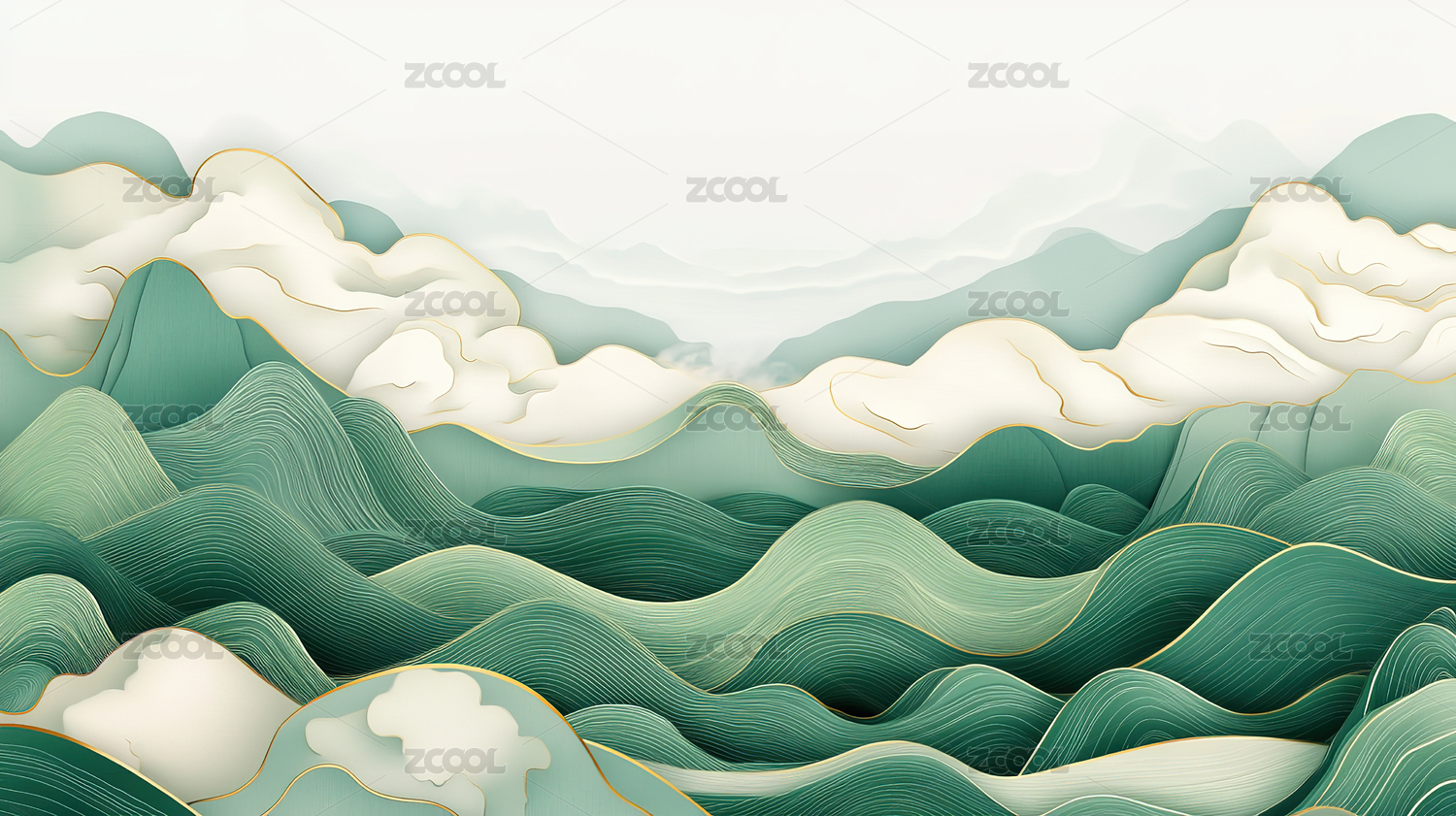 国潮中国风鎏金山水青绿背景抽象插画