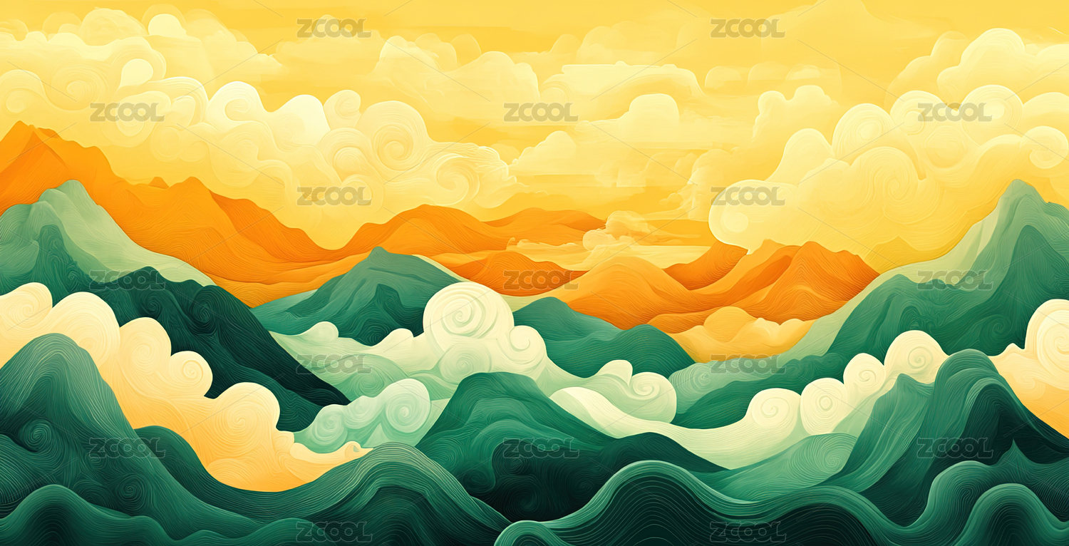 国潮中国风鎏金抽象山水背景插画