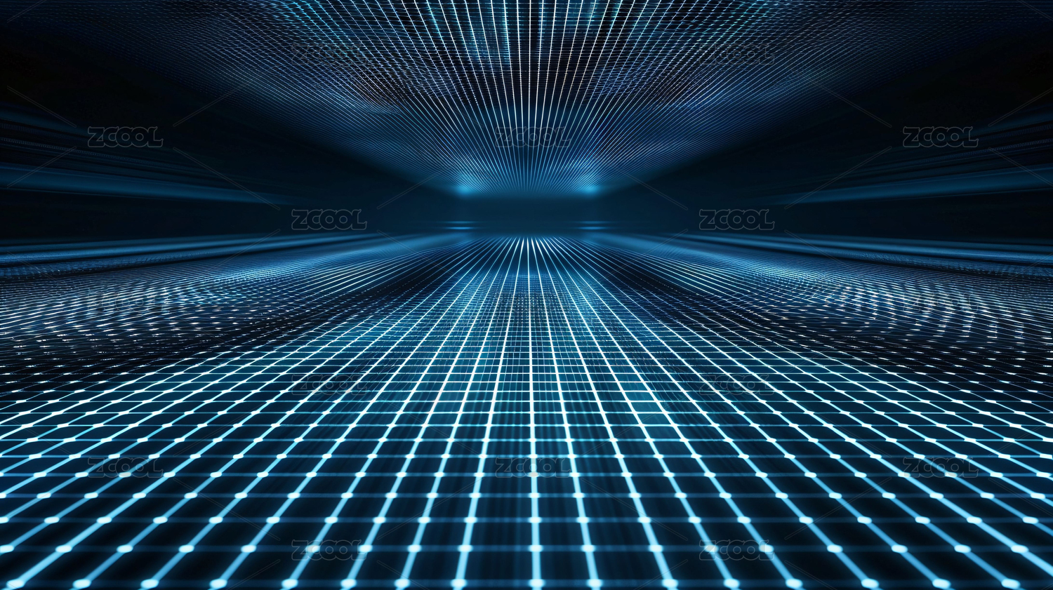 未来,光效,科技,黑色,蓝色,网格,发光,透视,概念,抽象
