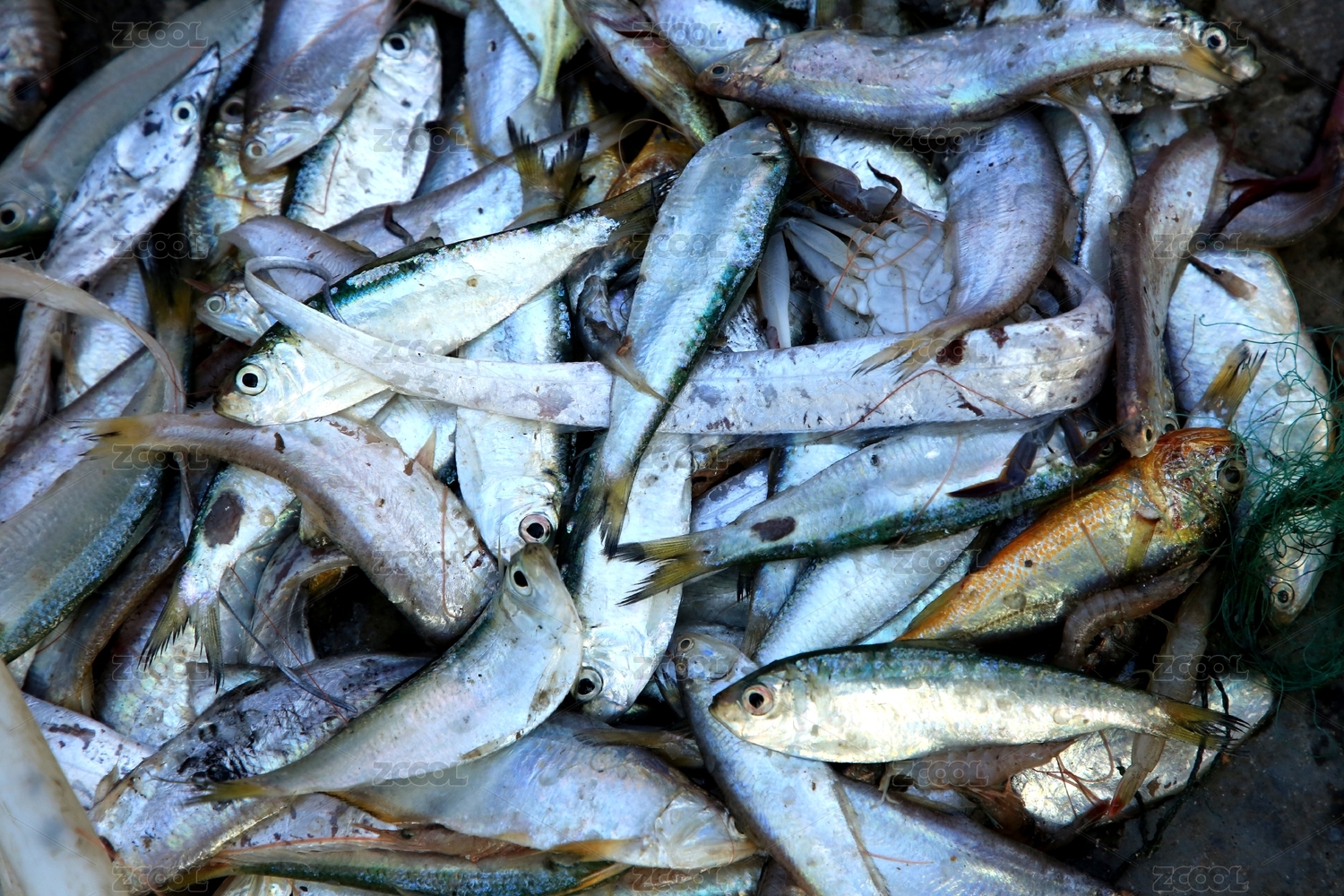菜市场摊贩出售的半篮野生鱼