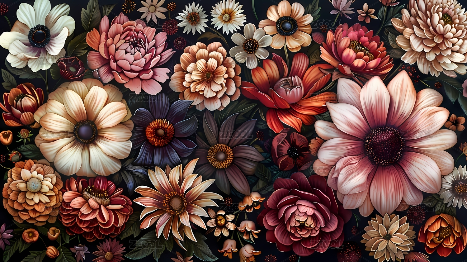 深色背景下的复古花卉