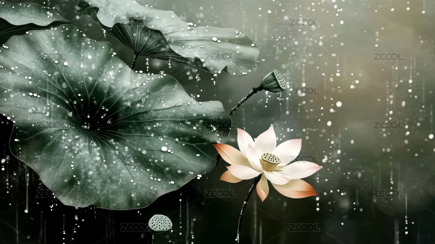 夏天荷花莲花清新自然大暑节气AI数字艺术