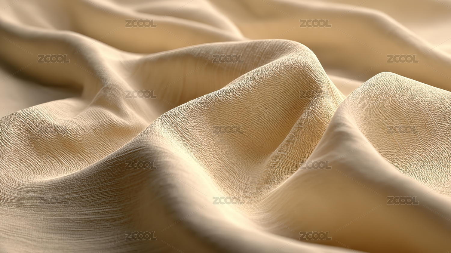 柔软的米黄色布料起伏褶皱画面