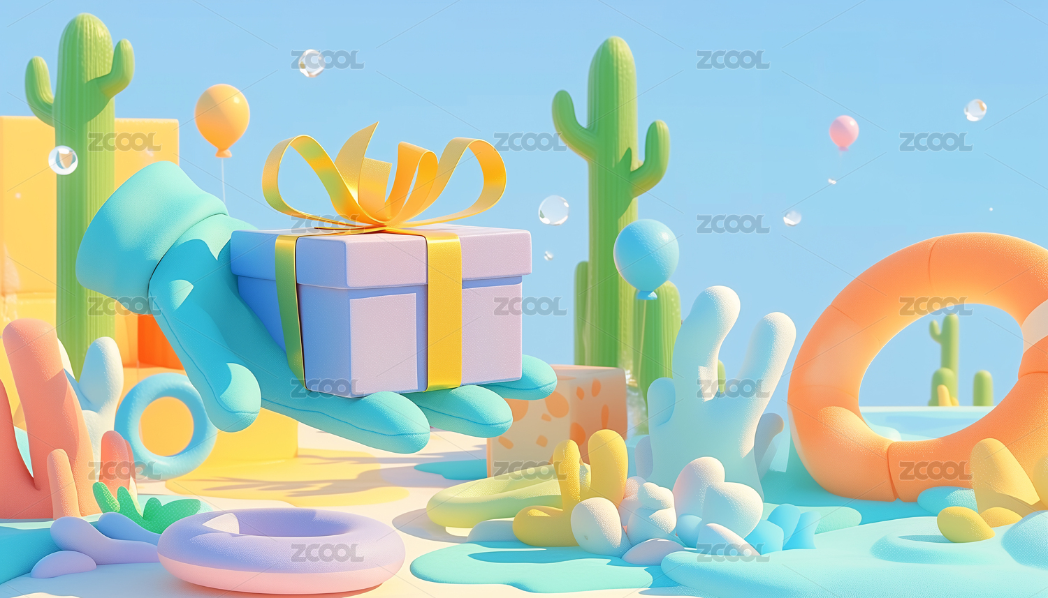 3D卡通礼物电商活动背景
