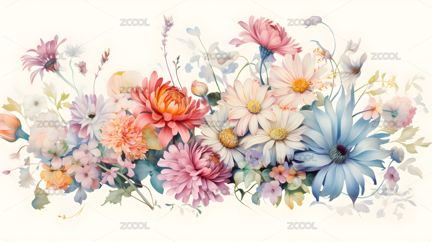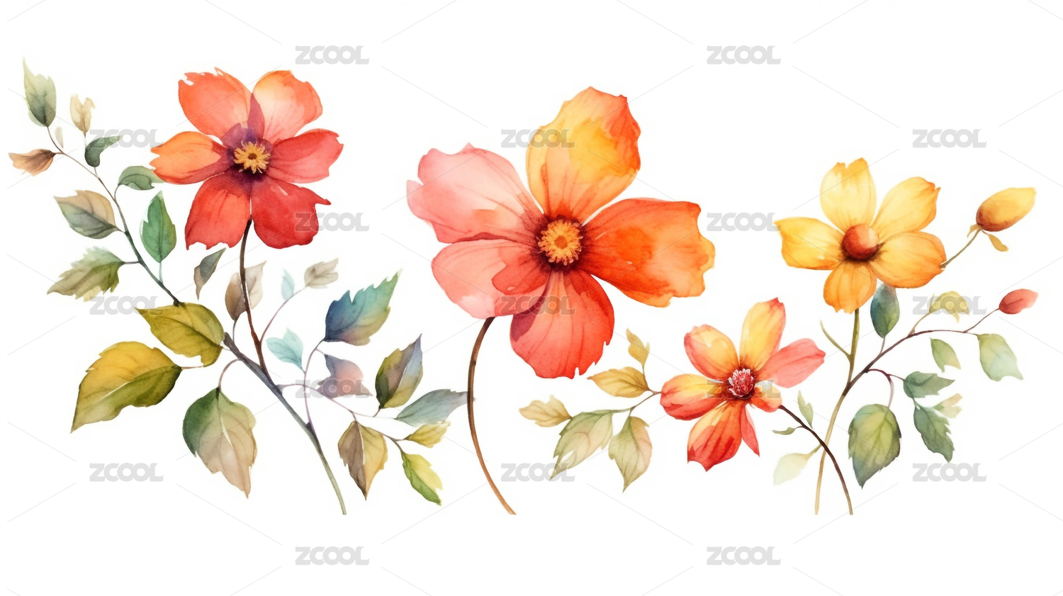 花,华丽的,自然,插画,叶子,植物学,夏天,花簇,植物,植物群