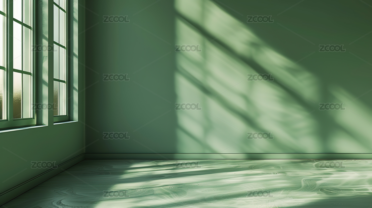 阳光透过窗户洒在木质地板上的空房间