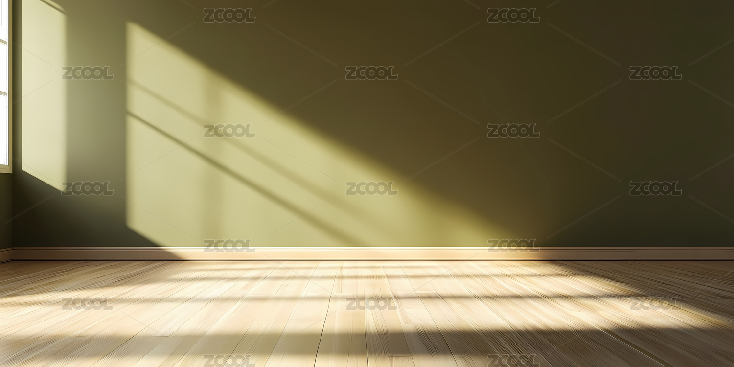 阳光洒在木质地板上的空房间