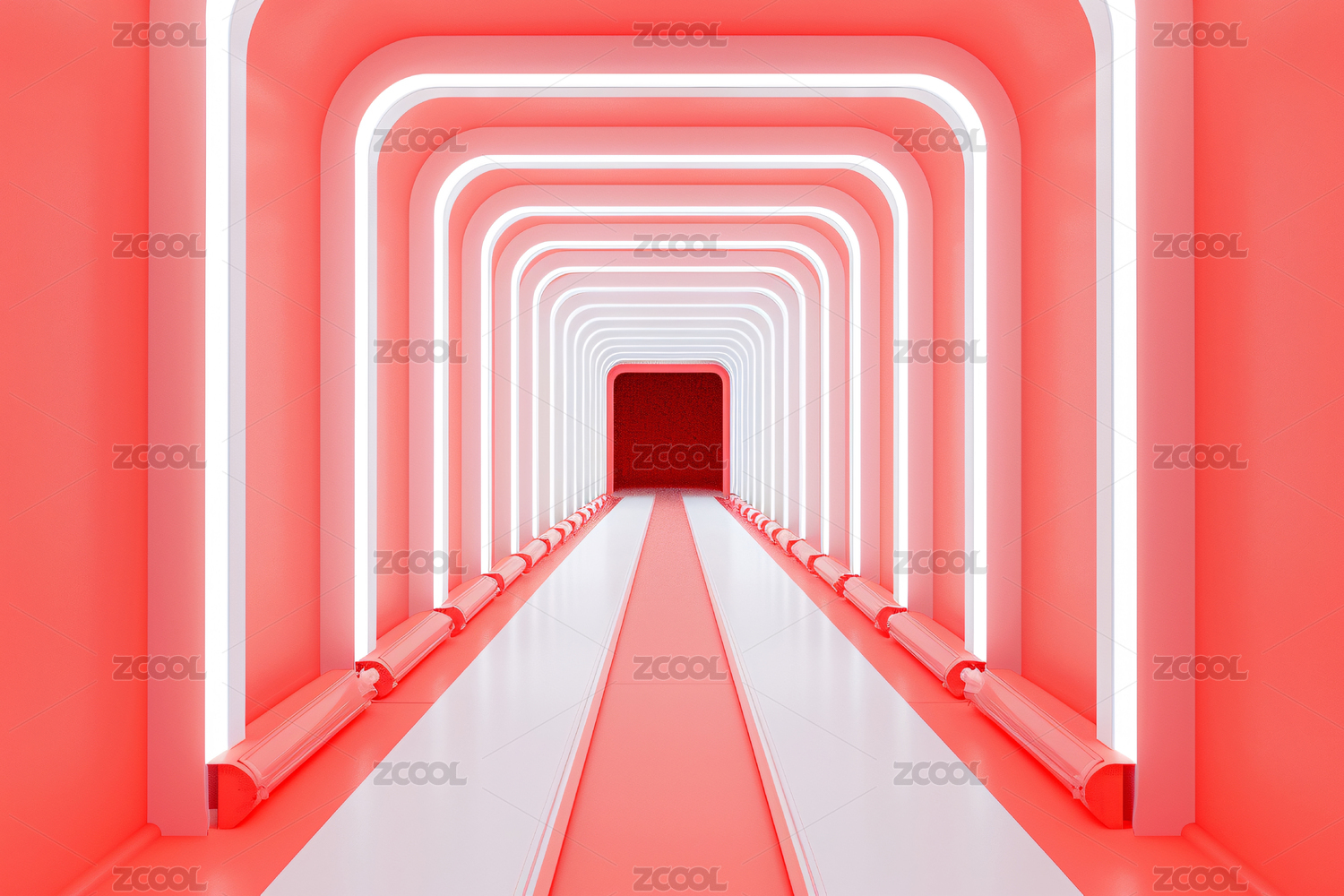 3D渲染科幻空间站宇宙飞船走廊概念插图