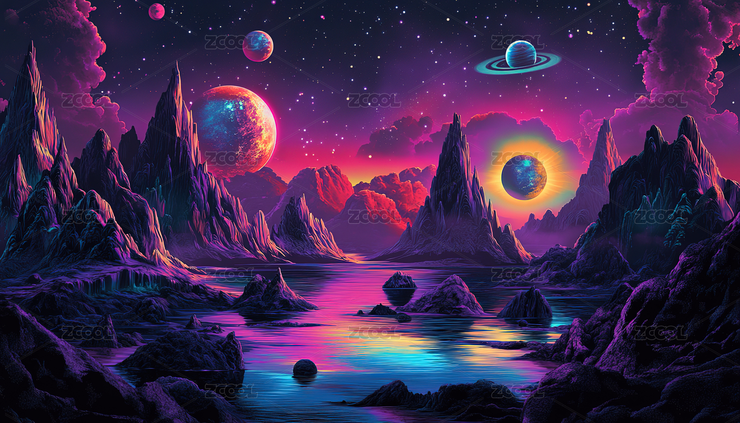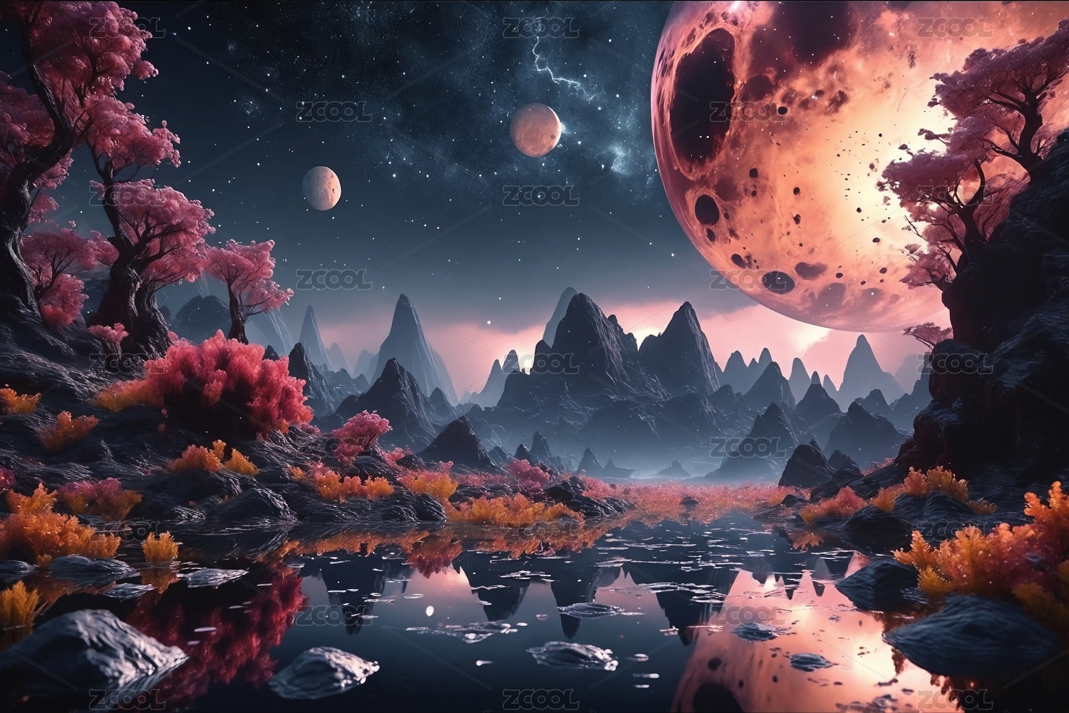 有奇异植物巨大星球水池瀑布的奇幻森林2