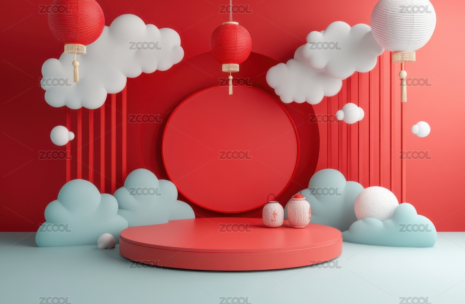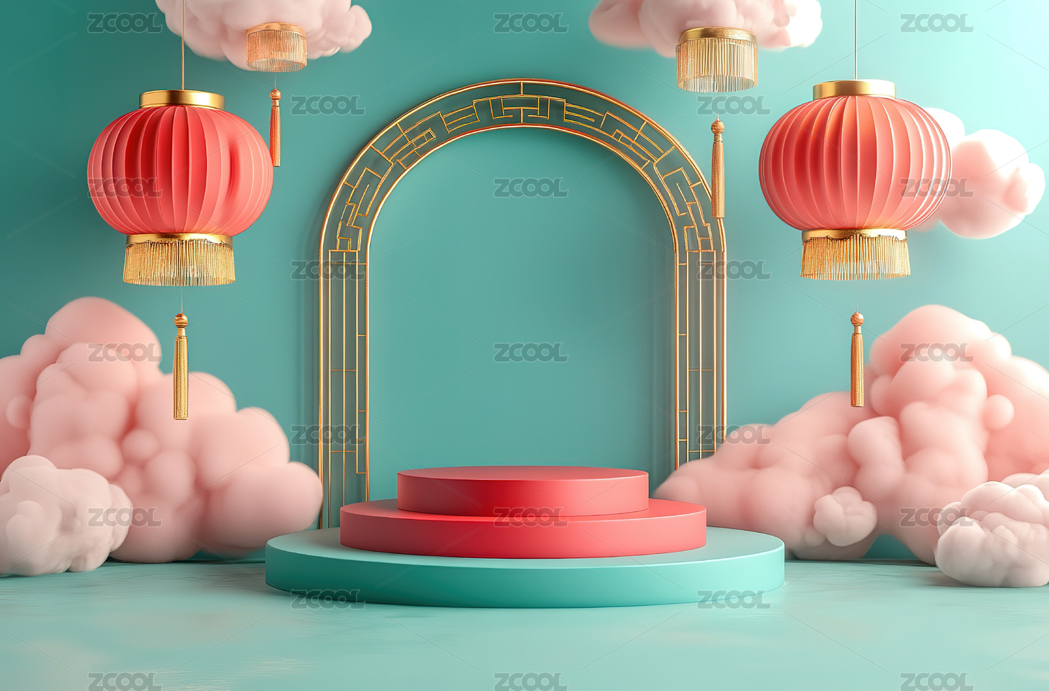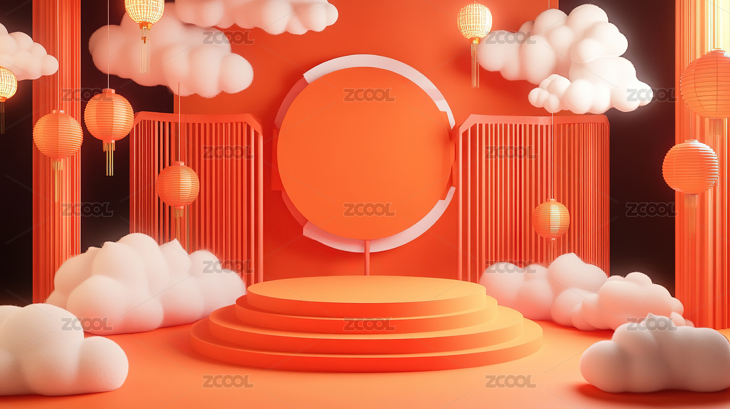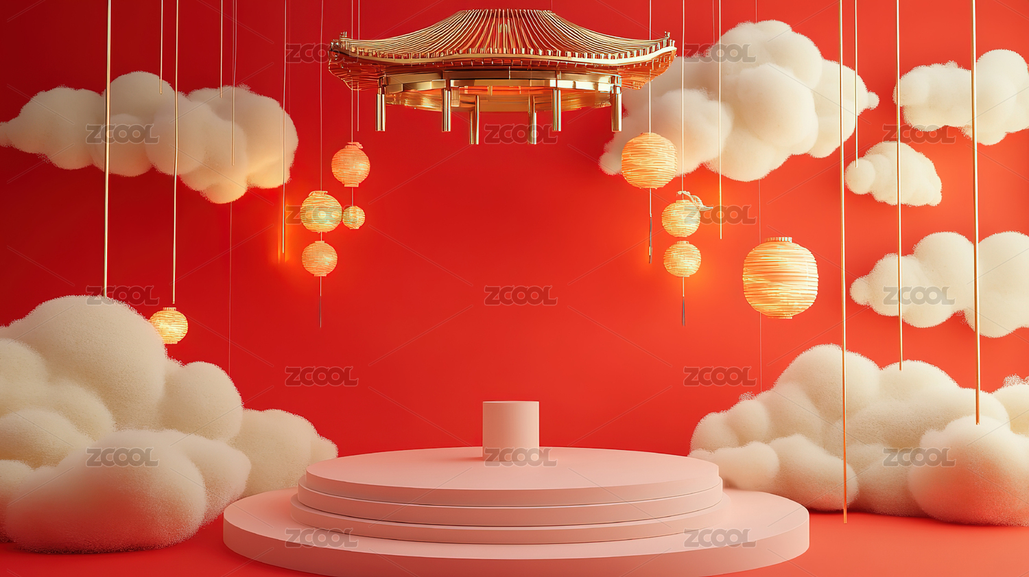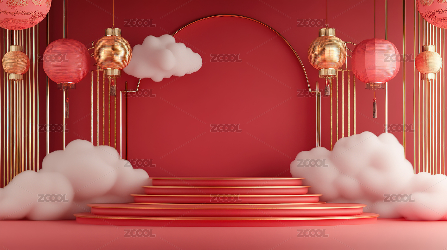 3D渲染喜庆中式国风传统电商背景图