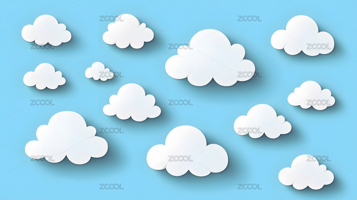 蓝色背景上的八朵白色云朵