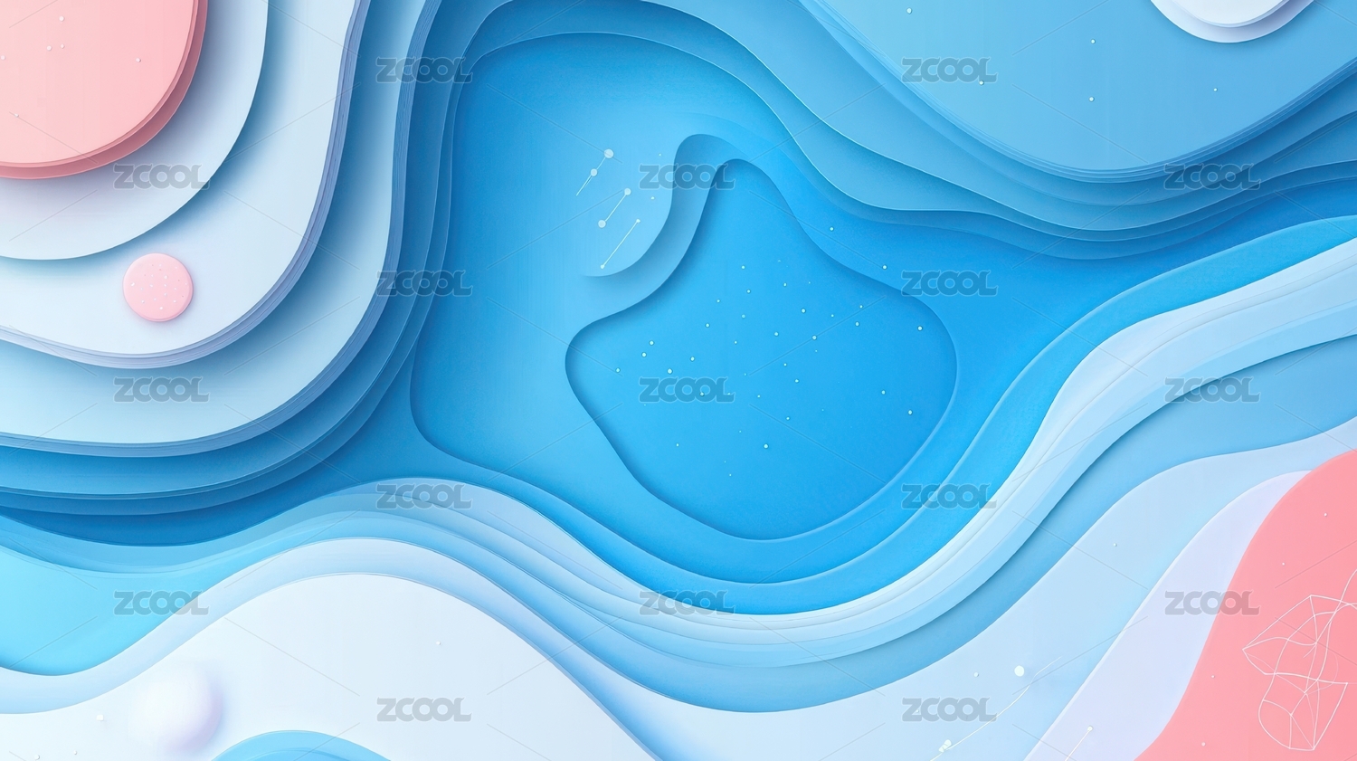 蓝色粉色卡通剪纸风波浪背景