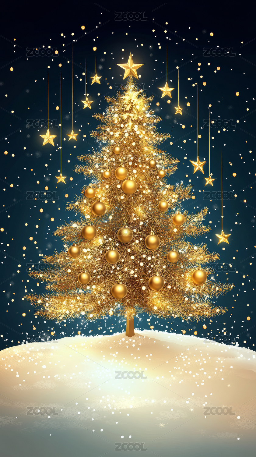 圣诞节节日氛围圣诞树发光竖版海报背景