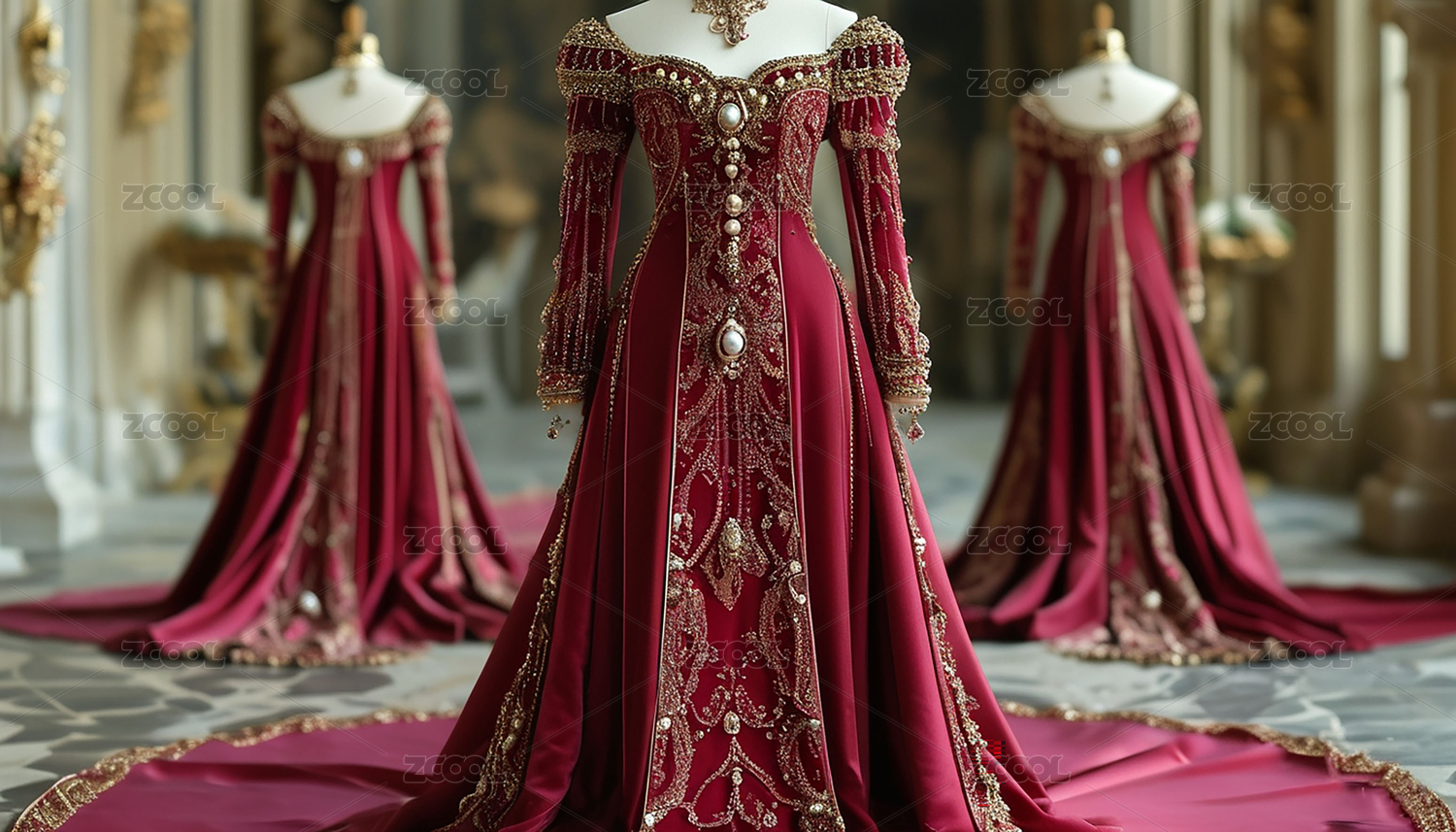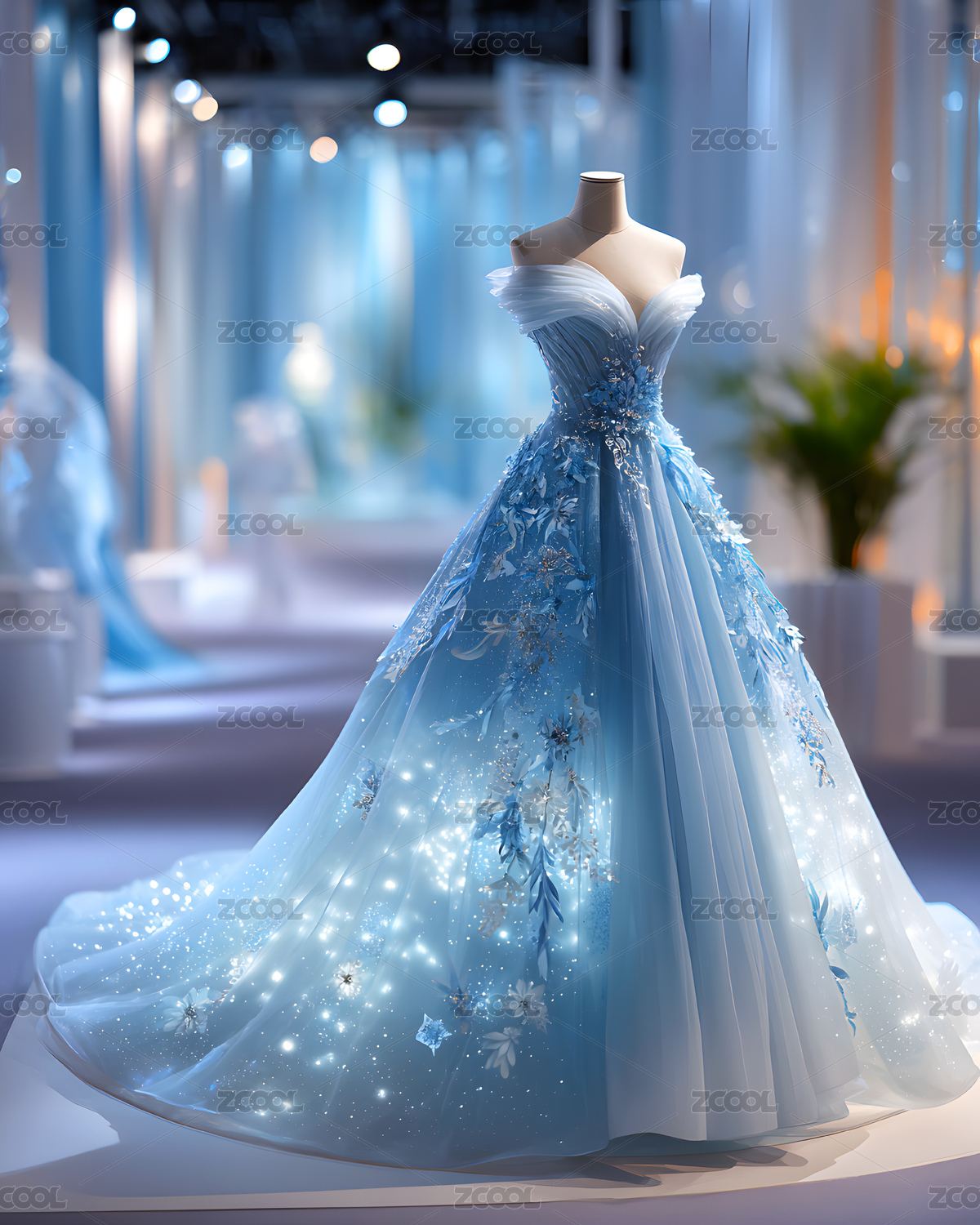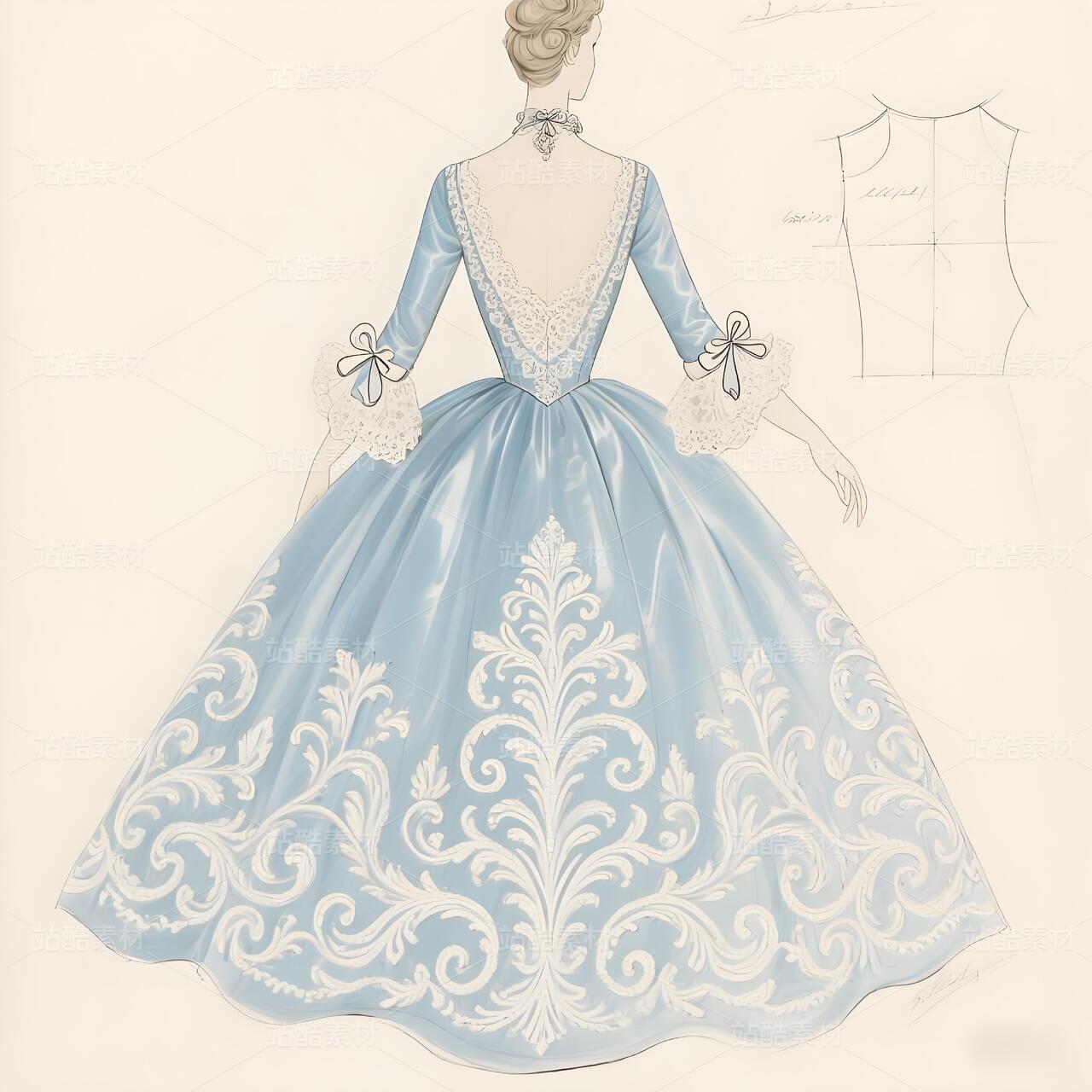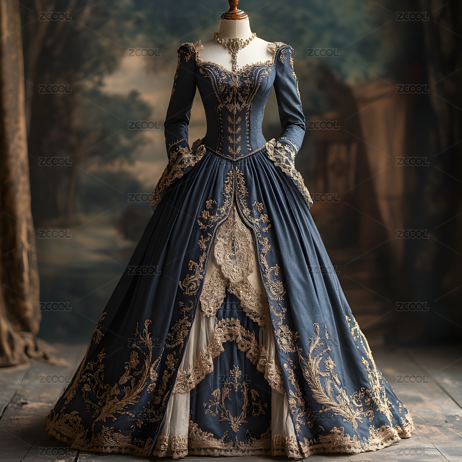 蓝色,华丽,高贵,宫廷风,长裙,花纹,金色