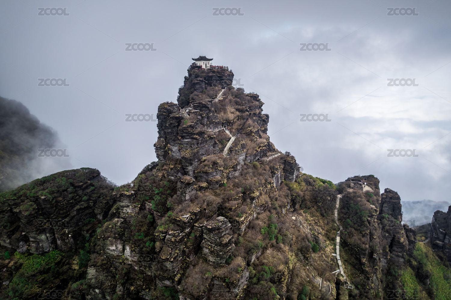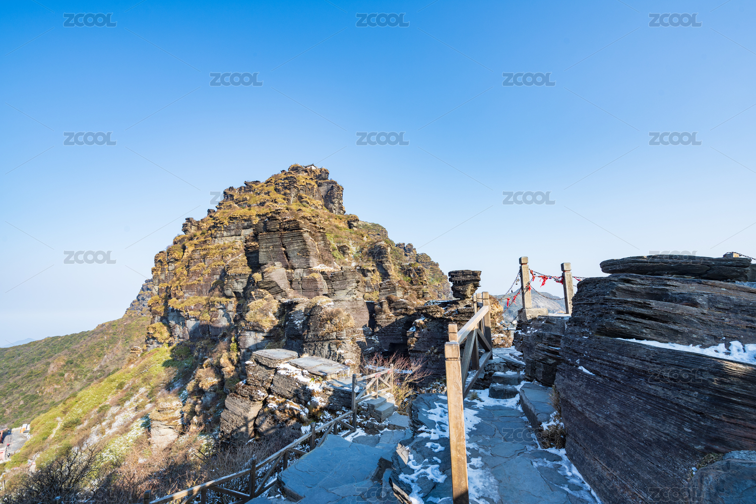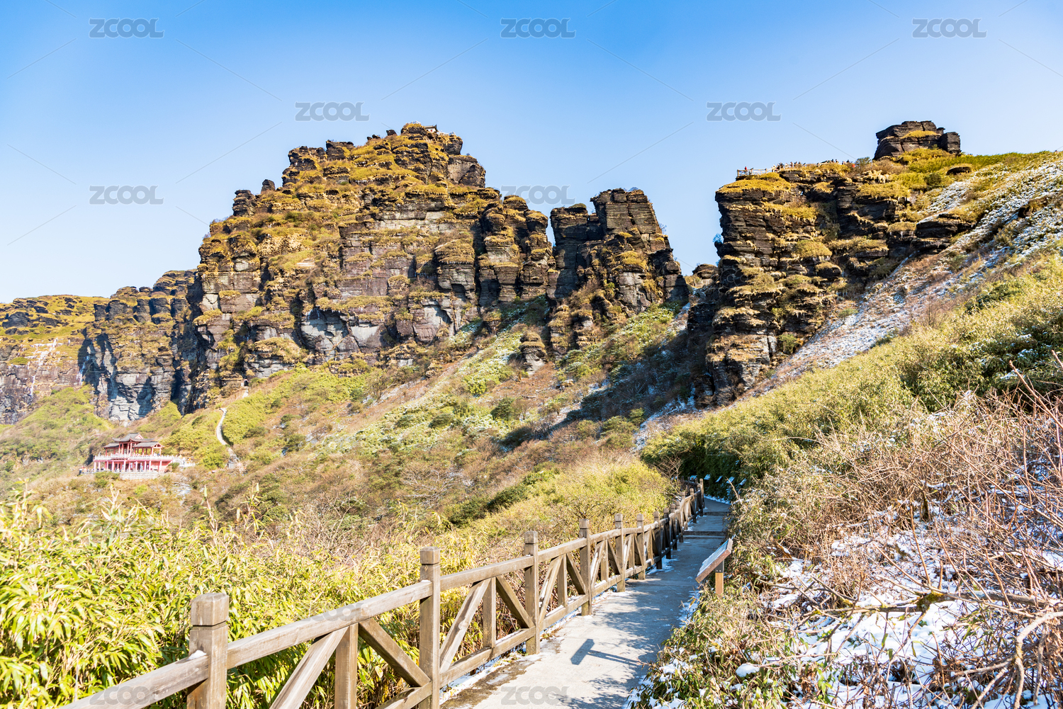 贵州铜仁梵净山冬季晴天下的蘑菇石