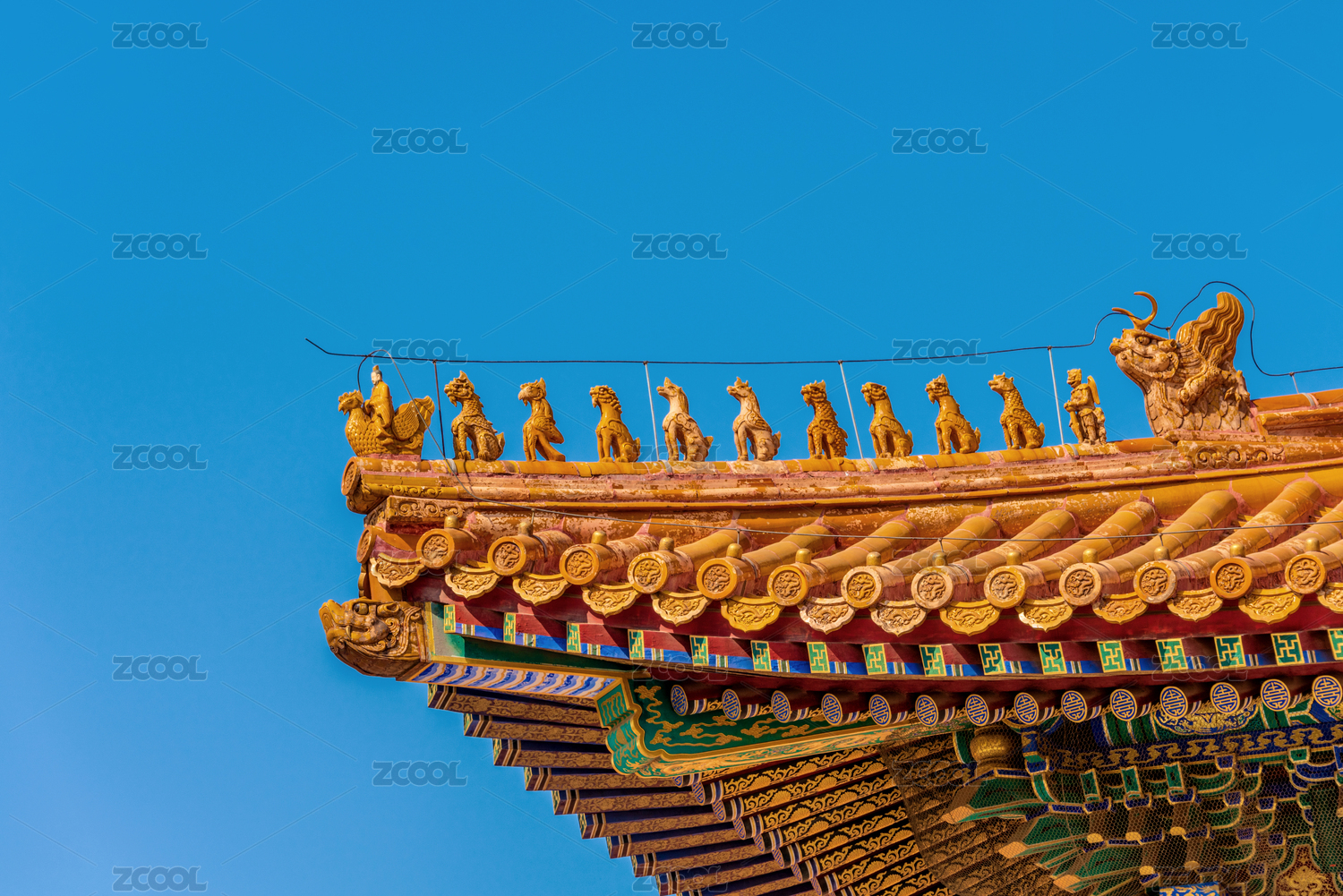 中国北京故宫东方古代建筑屋檐上的脊兽