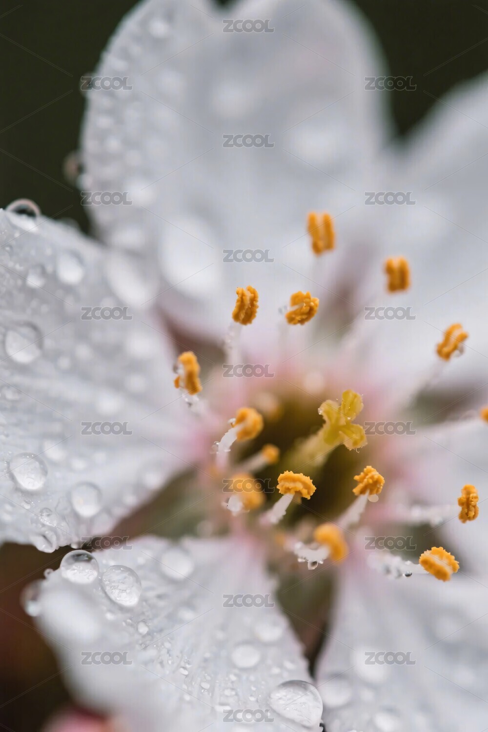盛开白色花朵清新水珠