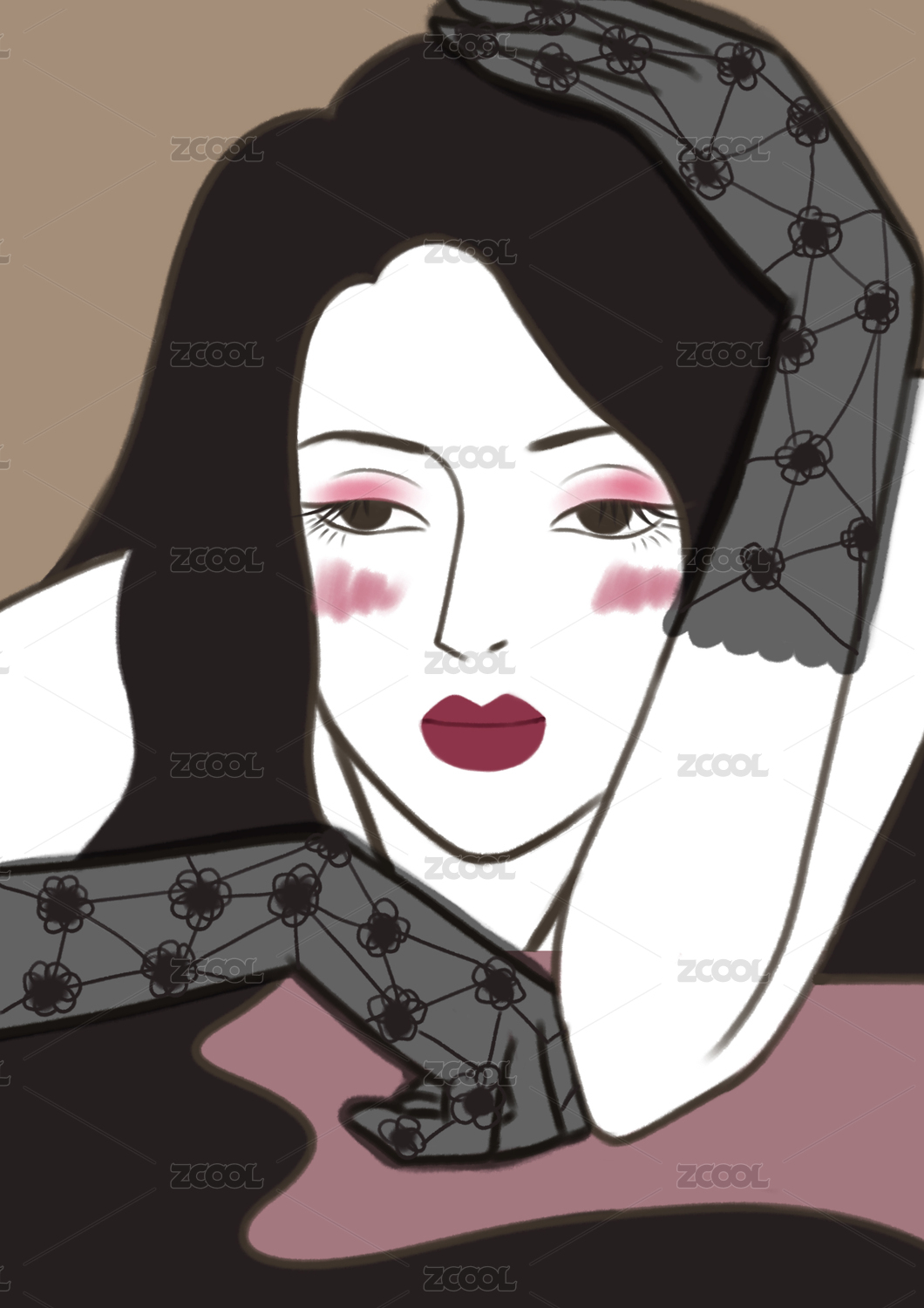 夏天黑头发黄皮肤东方女性头像扁平插画绘画