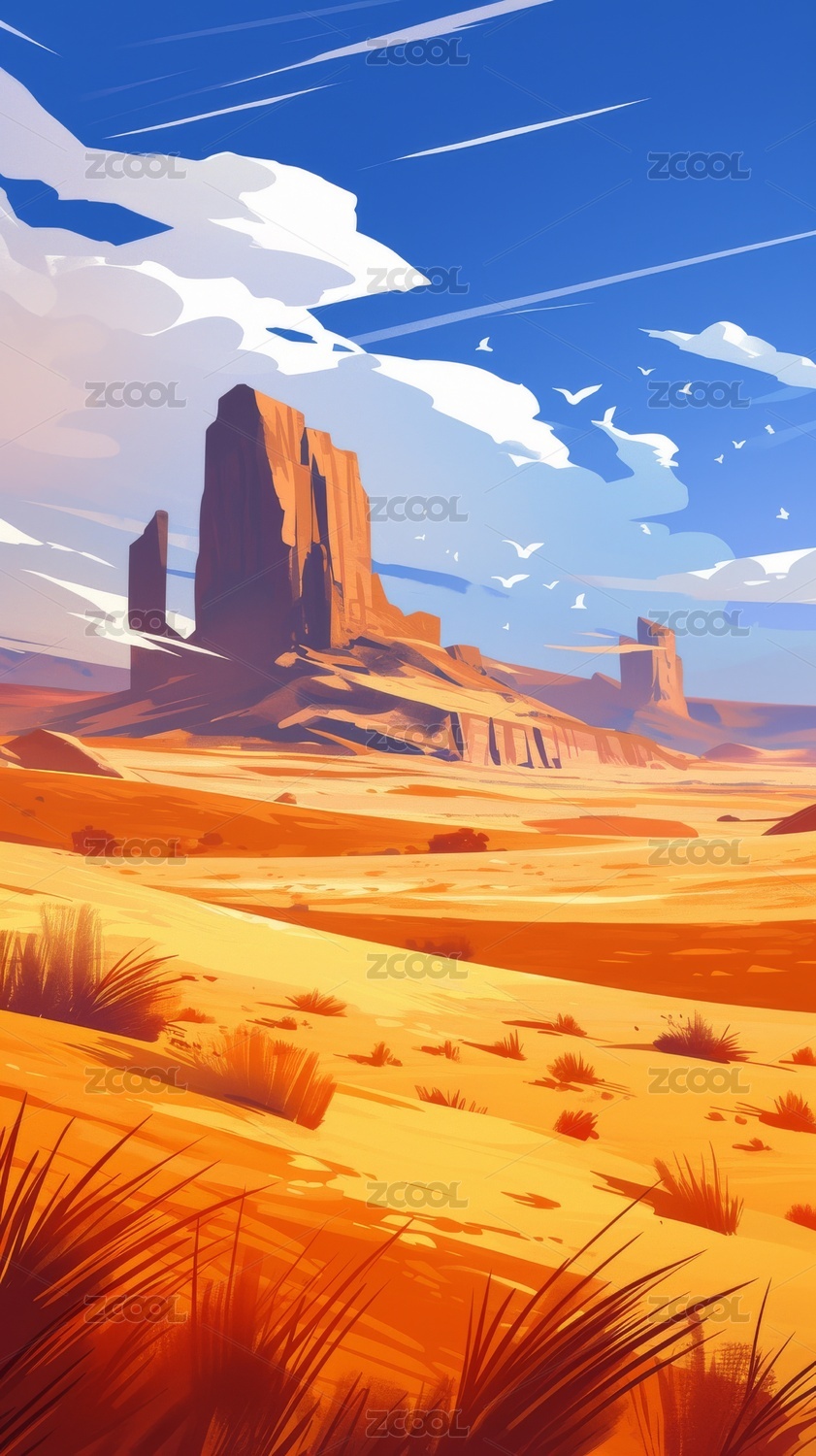 沙漠荒漠巨石石头沙丘植物蓝天白云