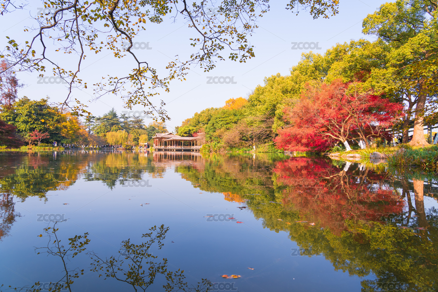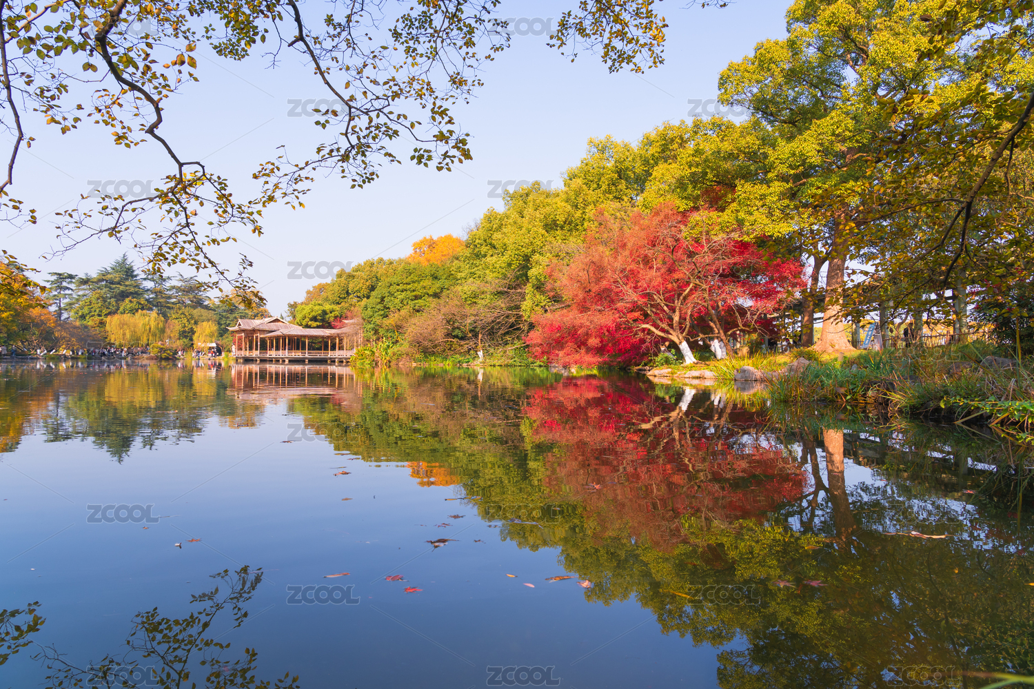 杭州西湖,曲院风荷,秋季,秋天,枫叶,风光,风景