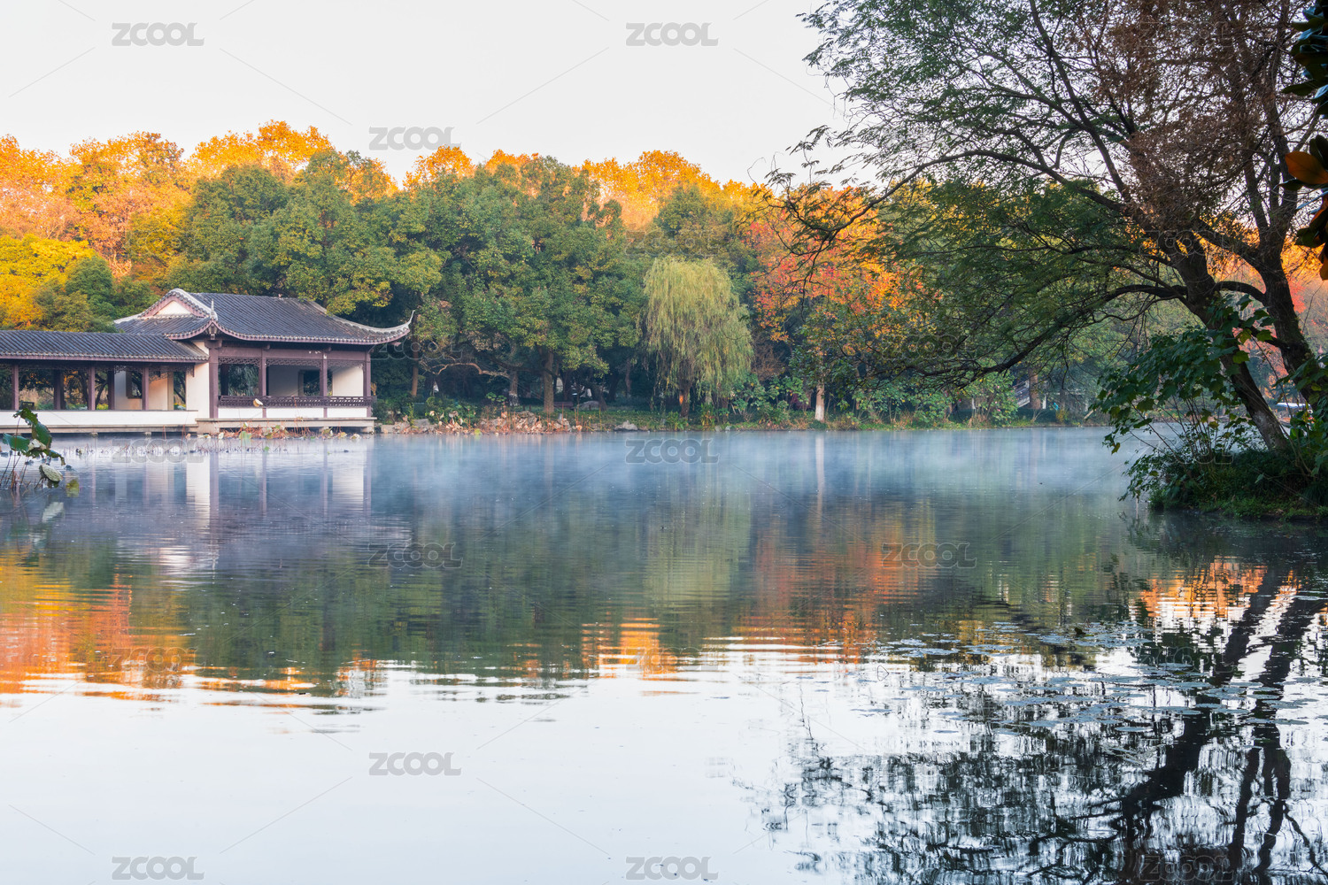 杭州西湖曲院风荷,中式建筑园林景观秋天