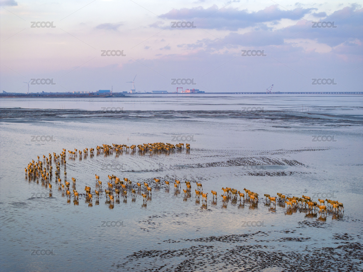 江苏,盐城,黄海,湿地,保护区,麋鹿,动物,海洋,海滩,生物