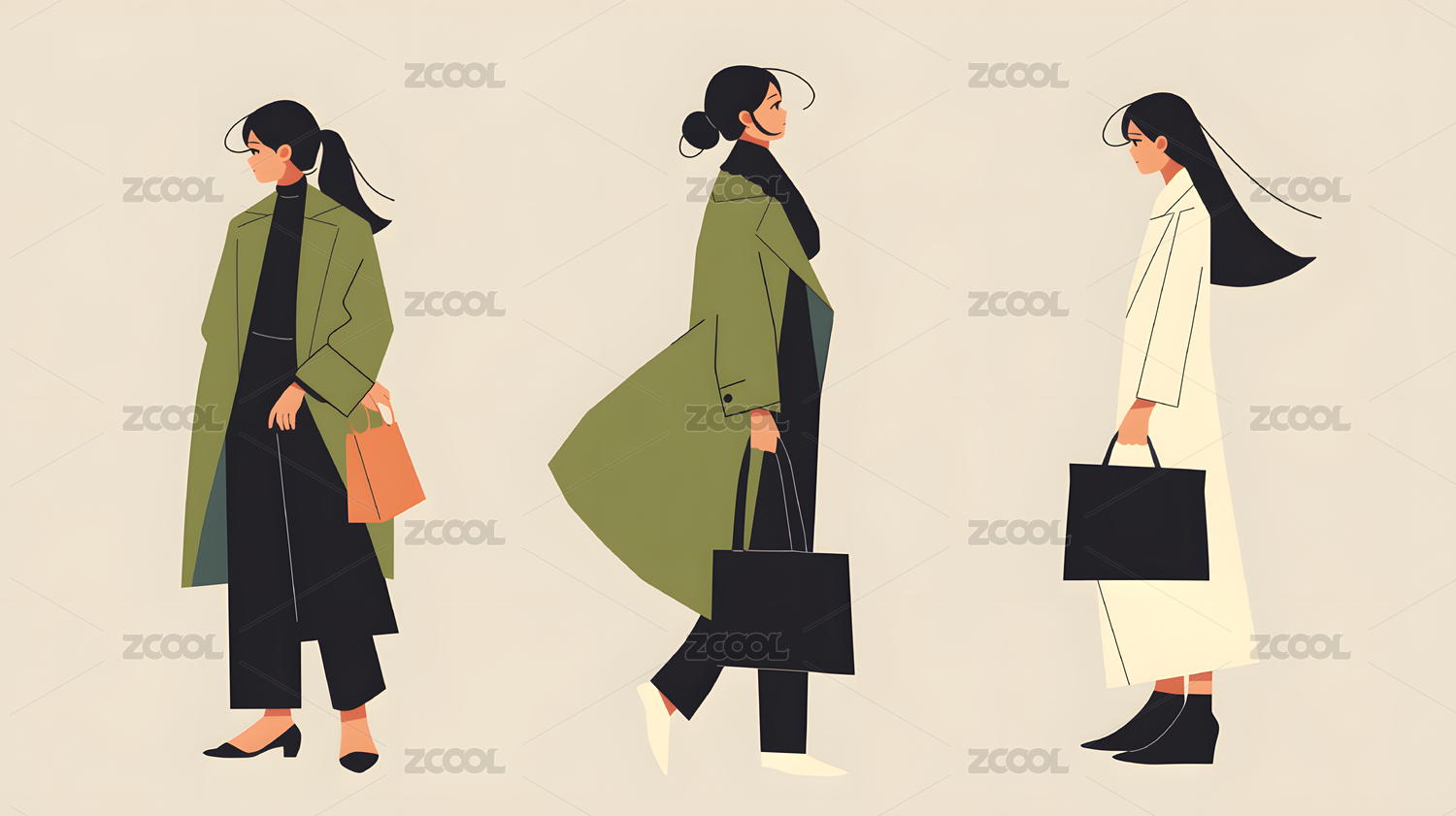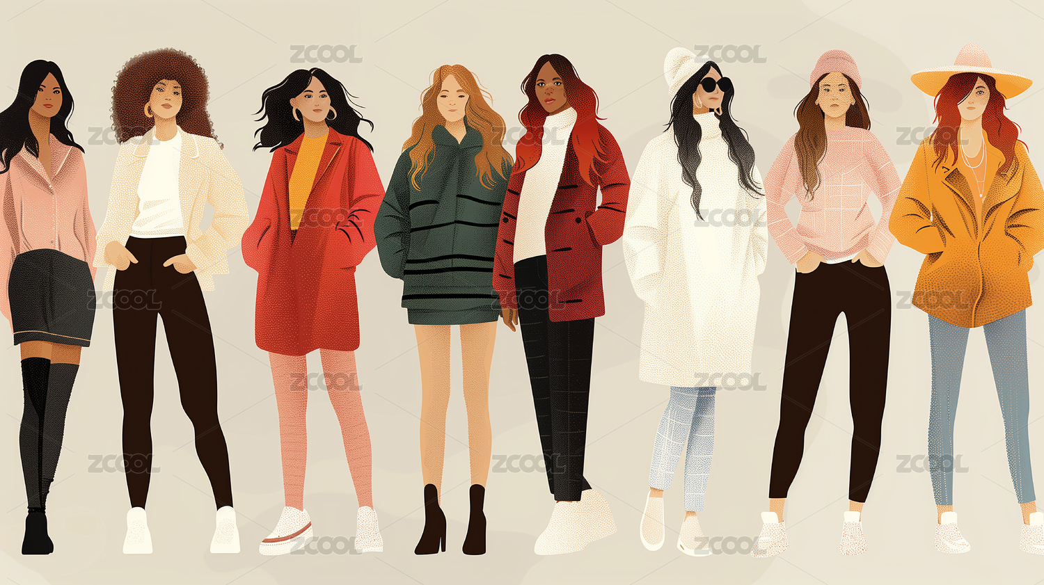 七个卡通人物简笔画秋冬穿搭简笔画卡通女生