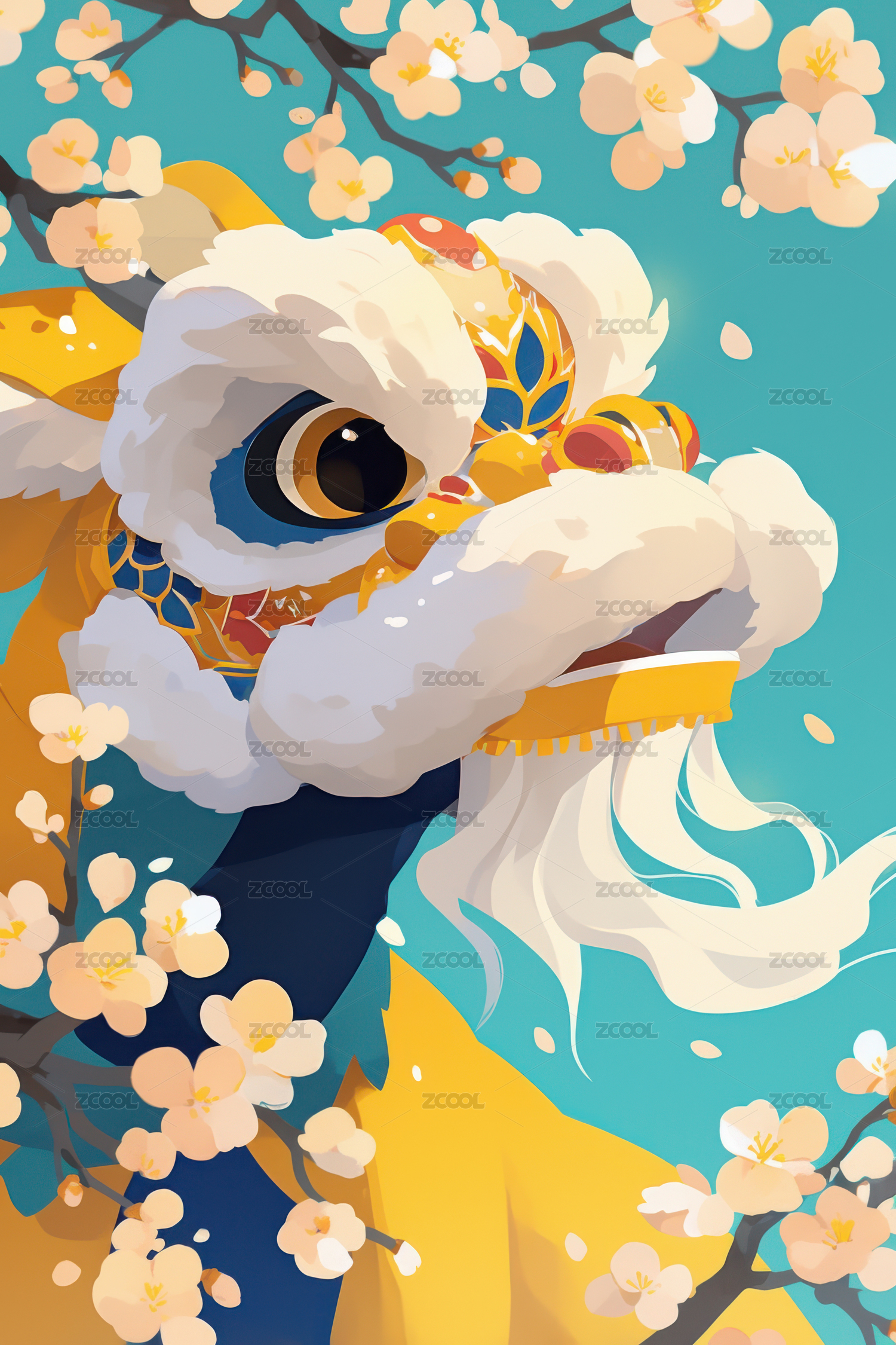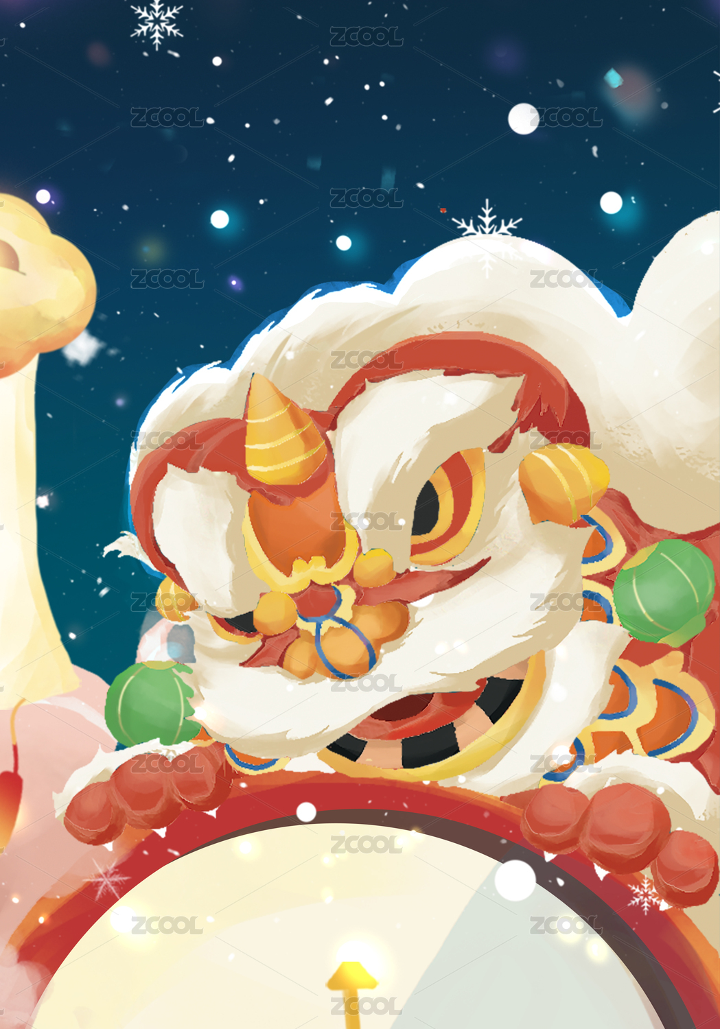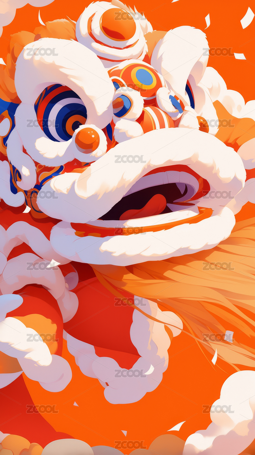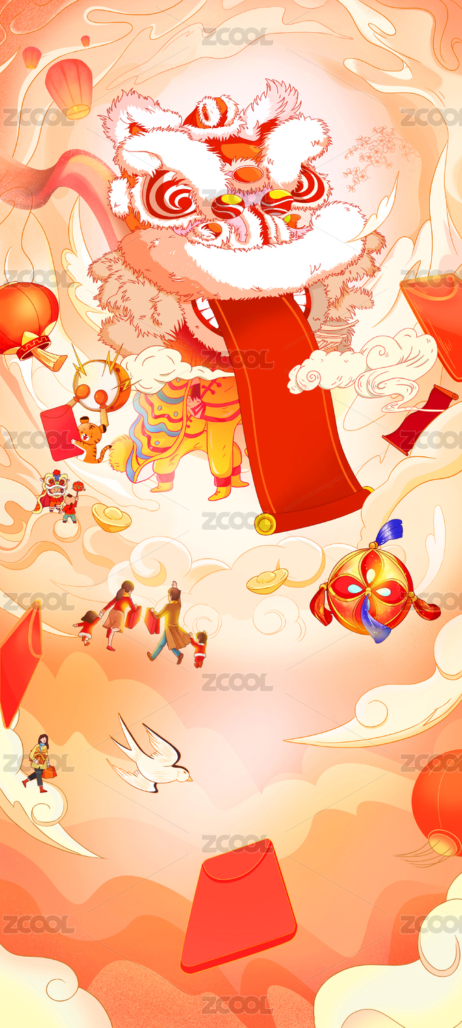 元旦春节舞狮插画