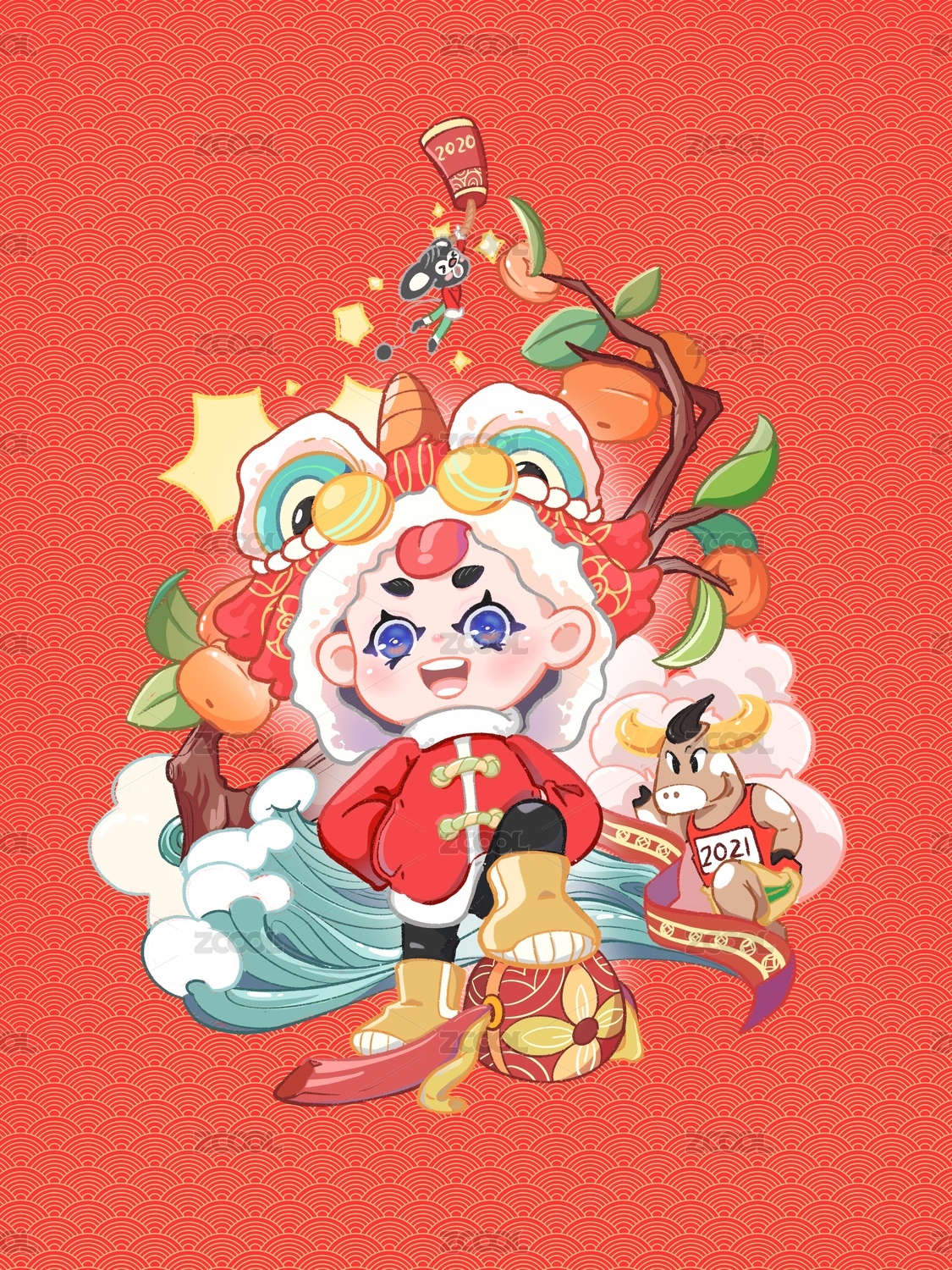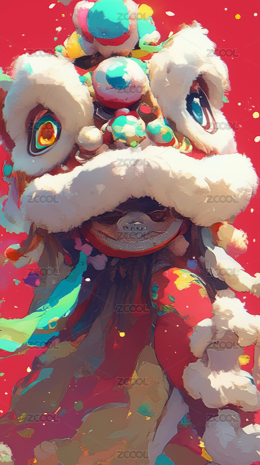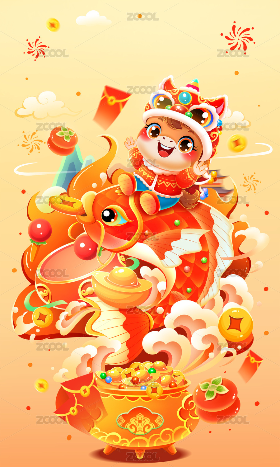 元旦春节舞狮插画