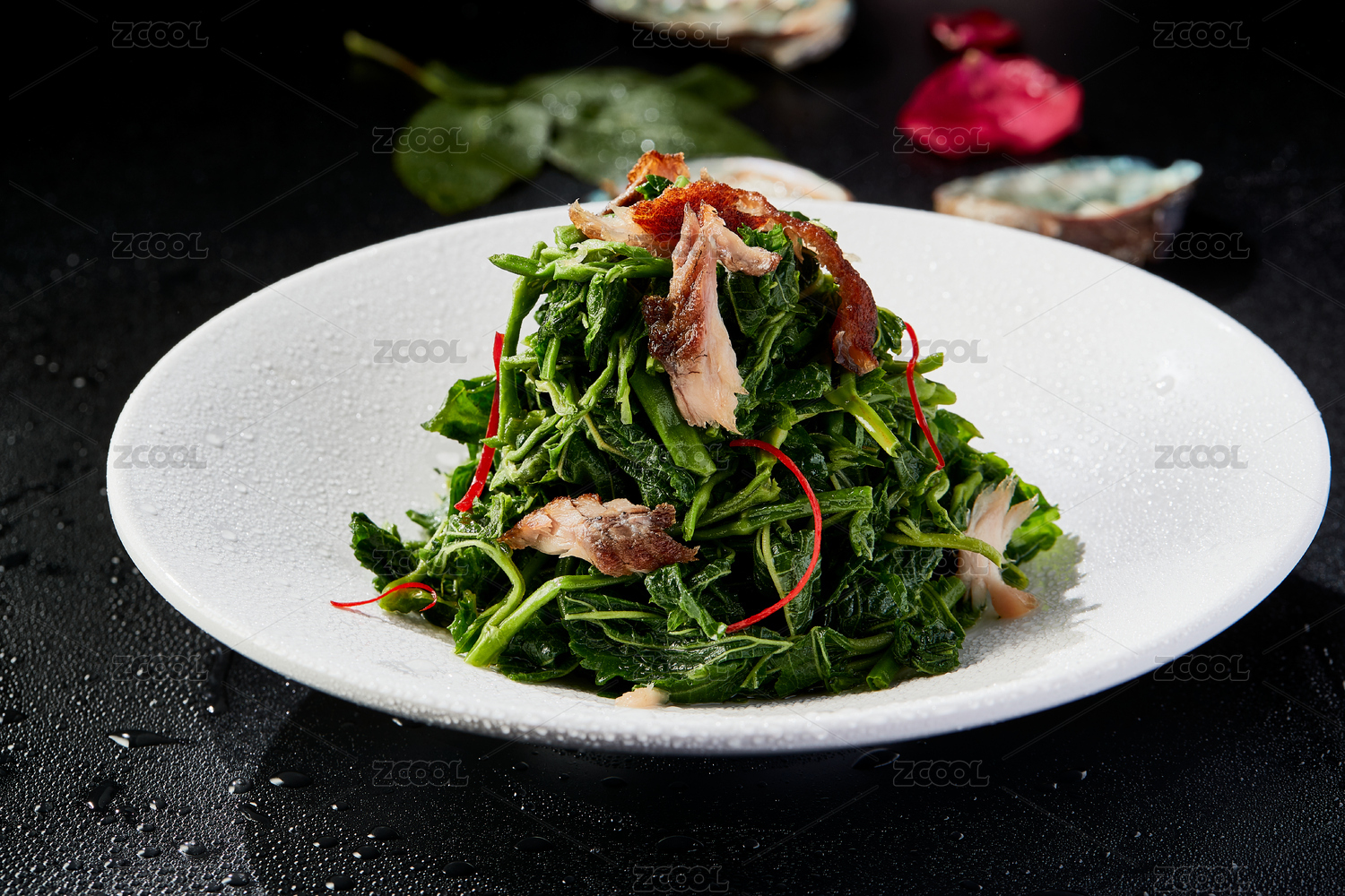 美味凉菜彩椒粒杏仁山珍菌拌蒲公英