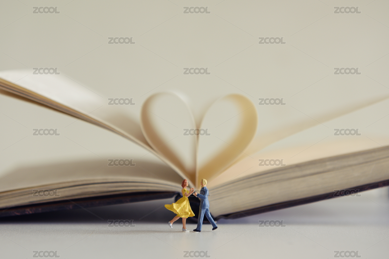 站在红线环绕内红心处拥抱的恋人微缩创意