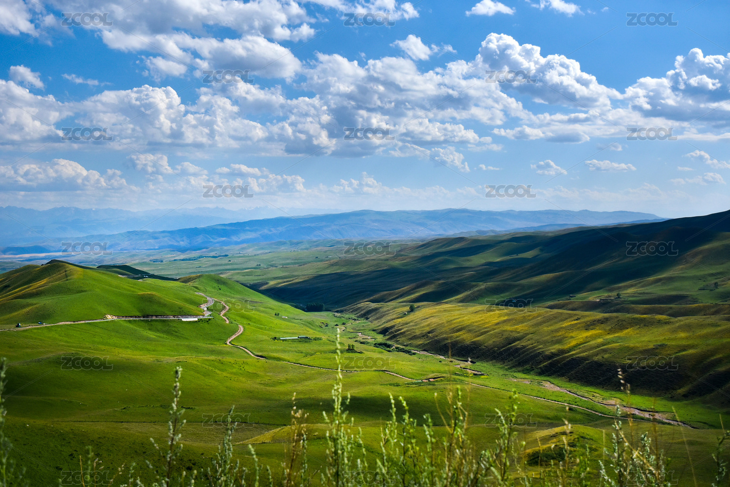 高视角下的中国新疆阿克塔斯草原定情坡风景