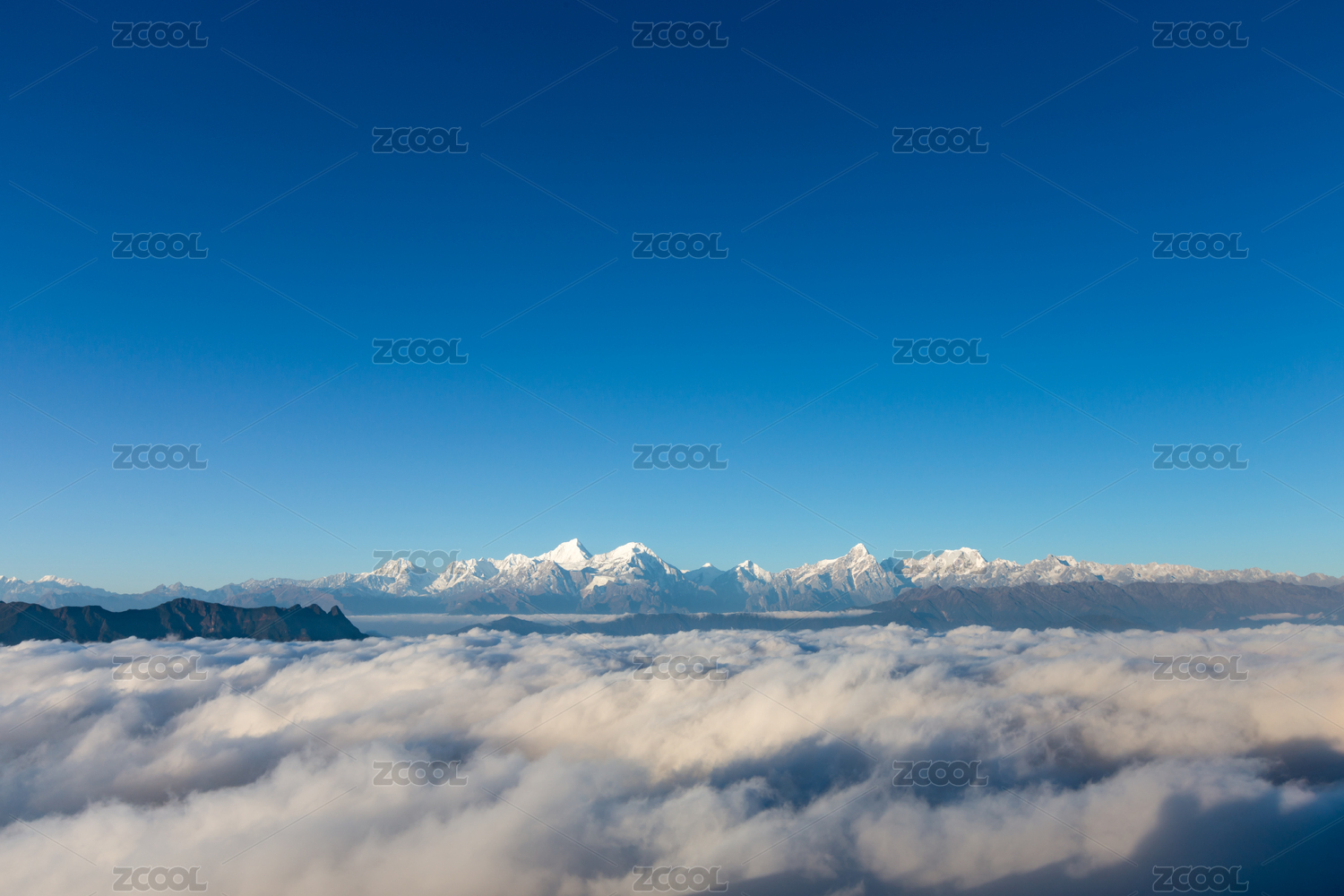 牛背山上远眺中国四川贡嘎雪山群峰