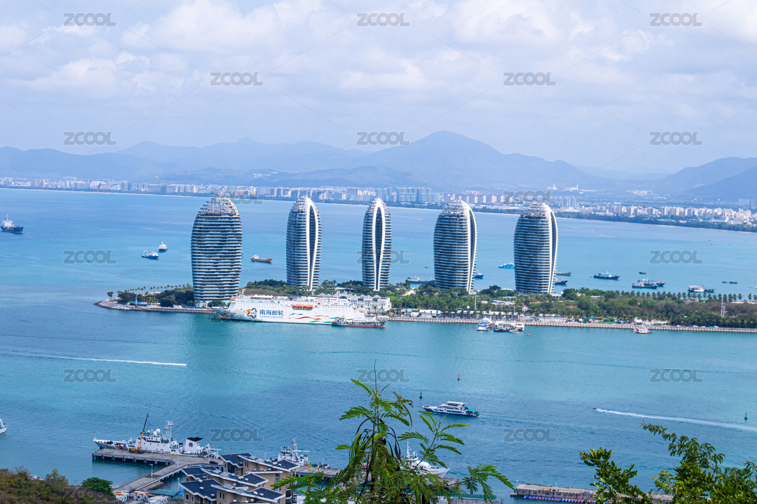 海南三亚鹿回头风景区俯瞰帆船酒店