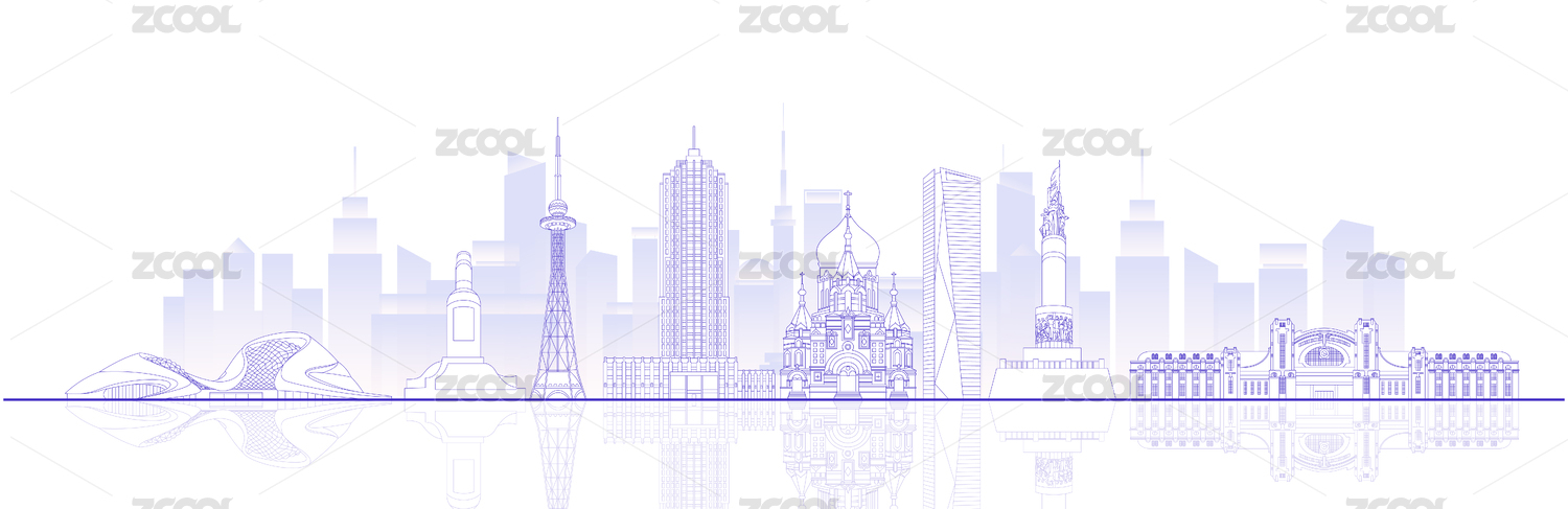 哈尔滨城市建筑科技现代蓝色线稿矢量插画