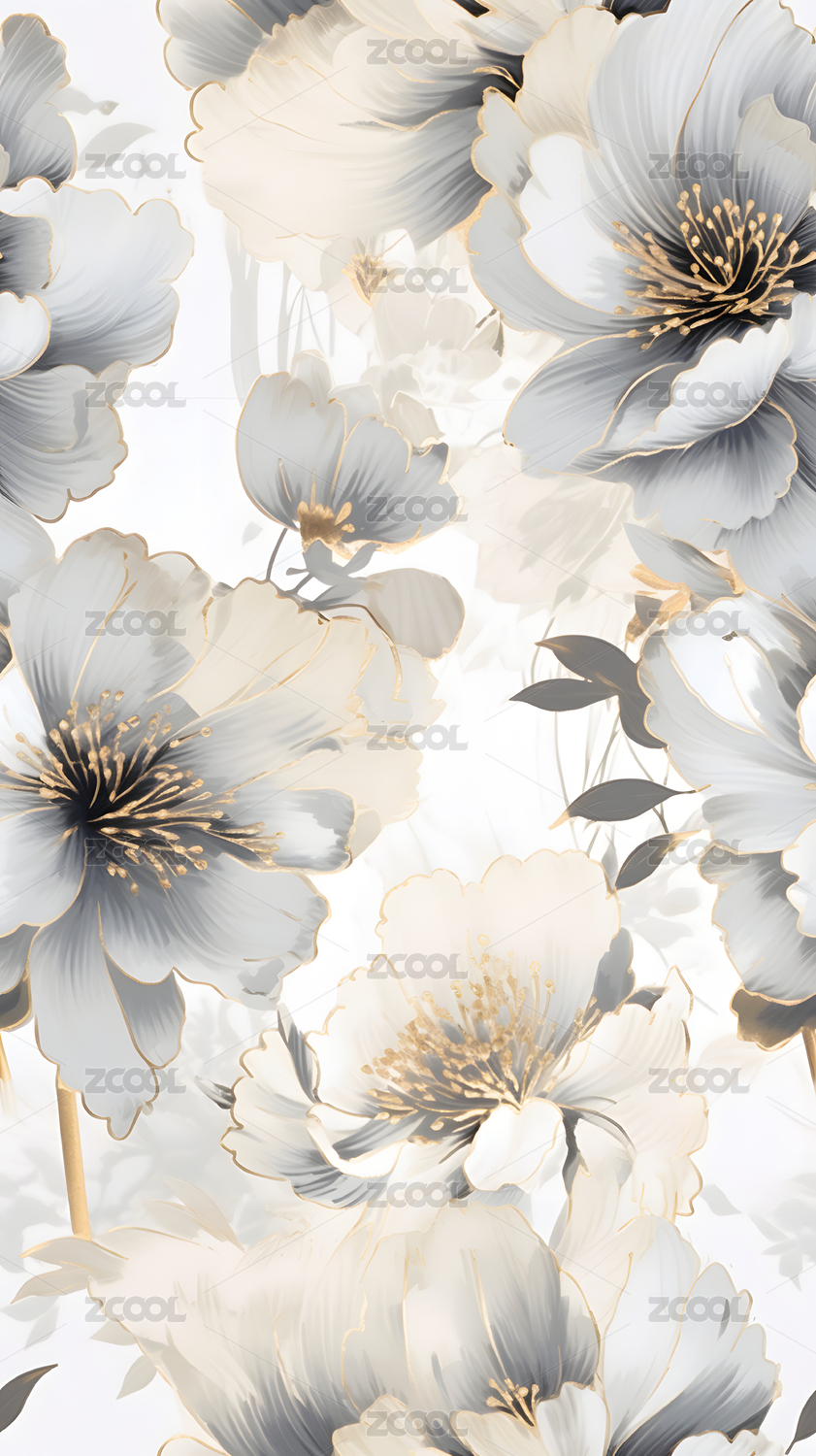 数码复古金色牡丹花卉装饰抽象图形海报背景