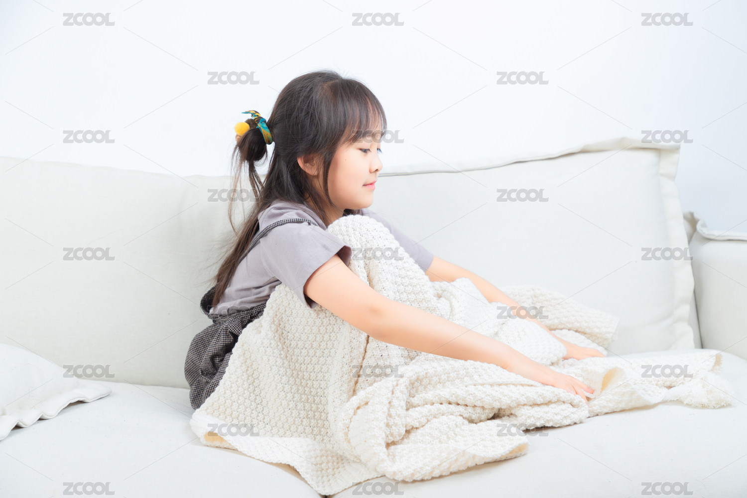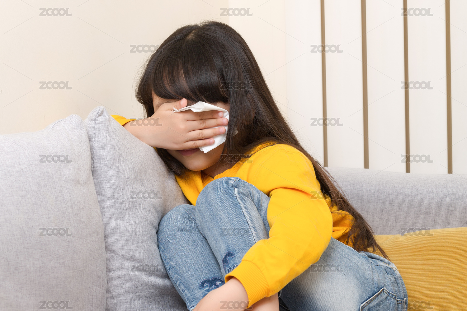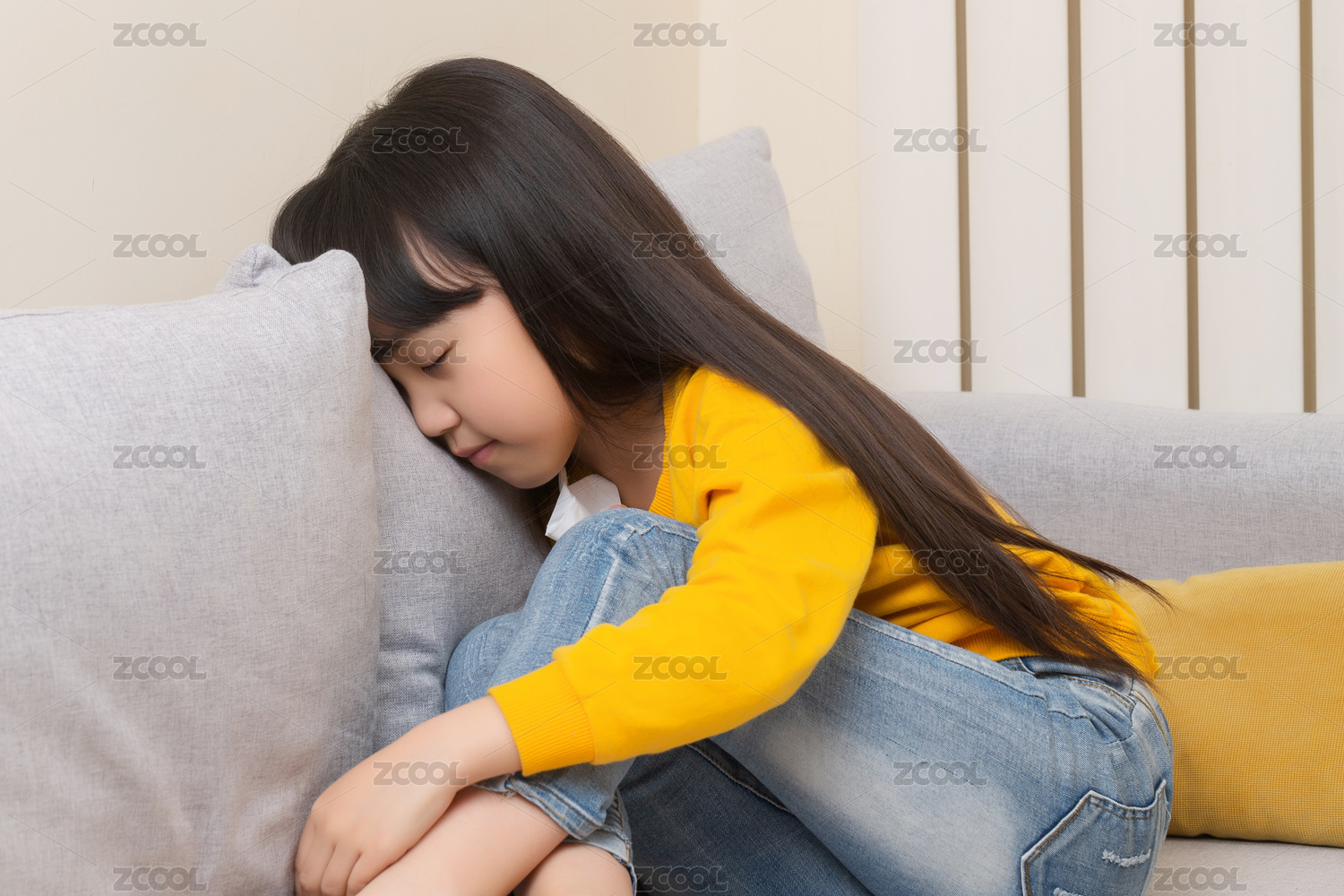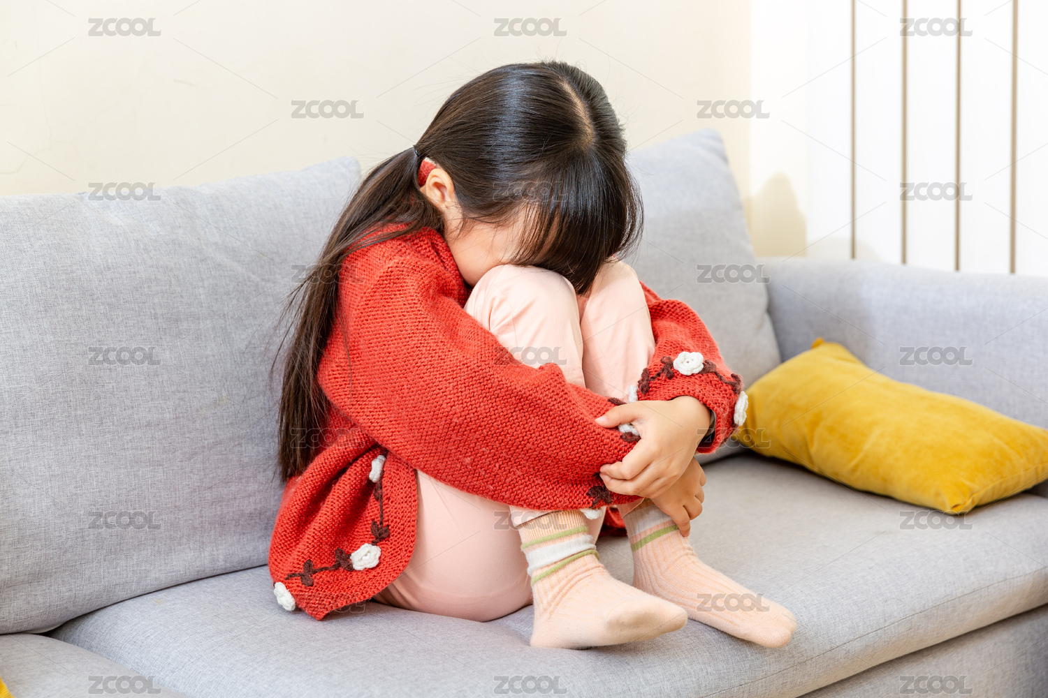 儿童,室内,小女孩,情绪,伤心,哭泣,难过,沙发,蜷缩,小学生
