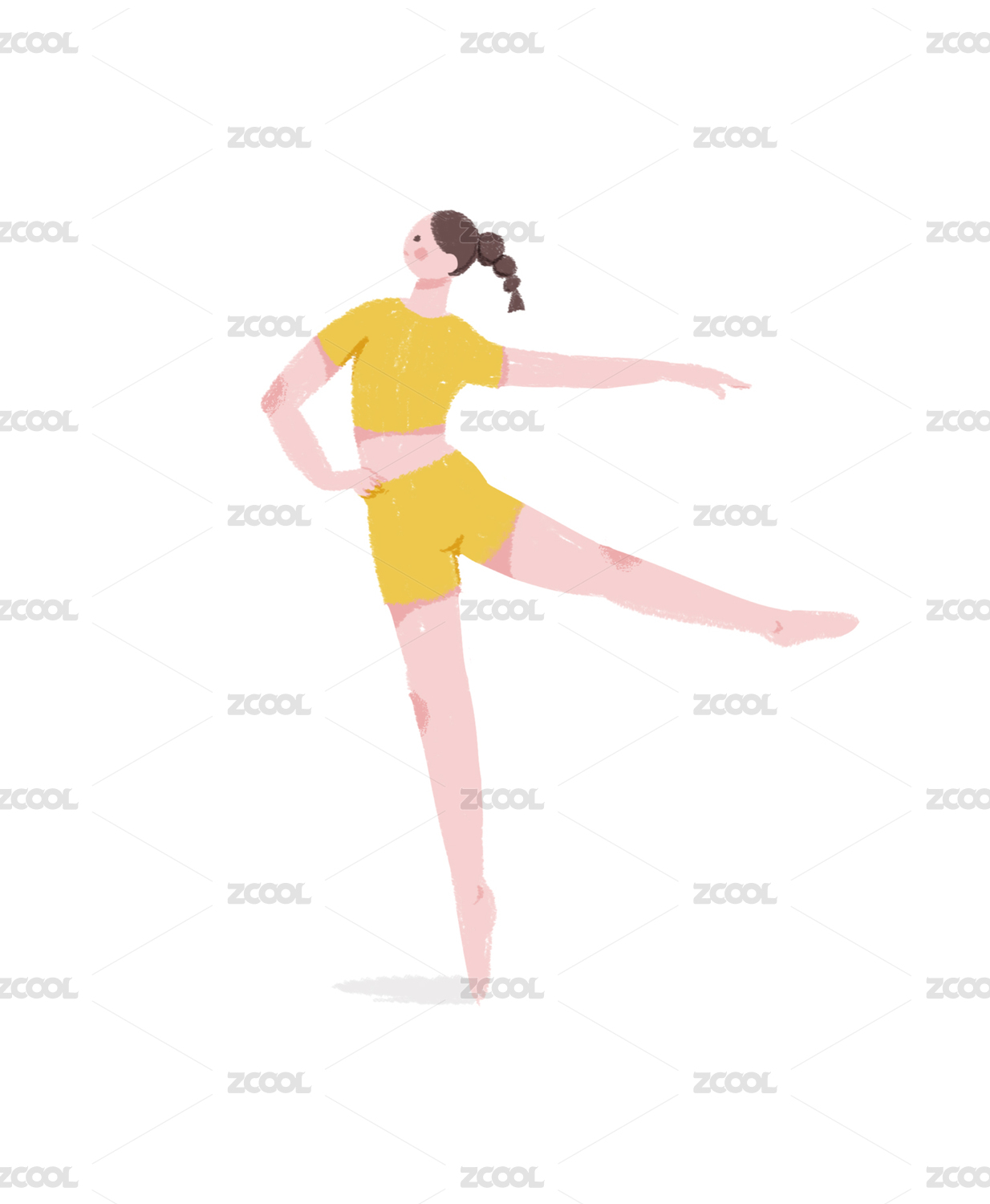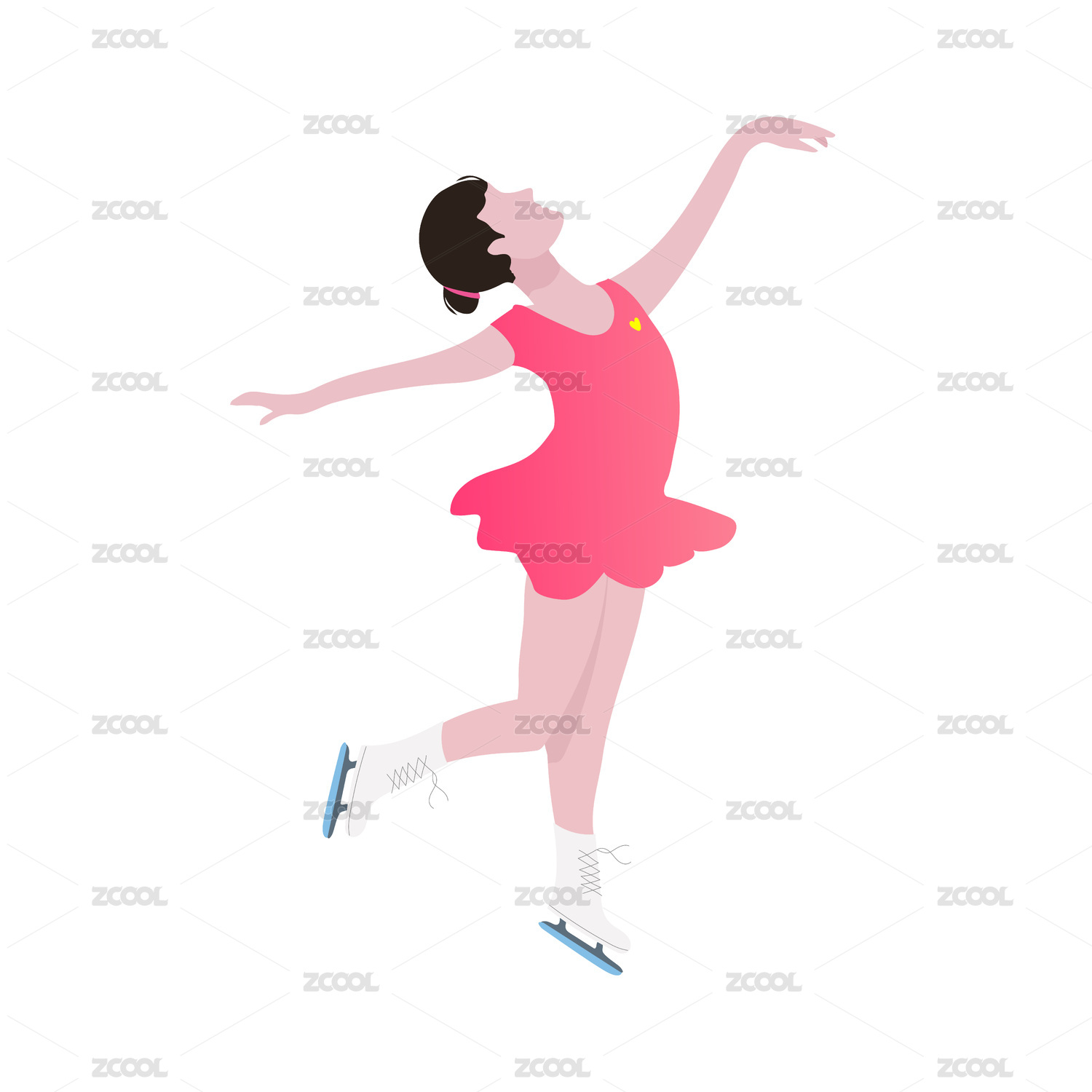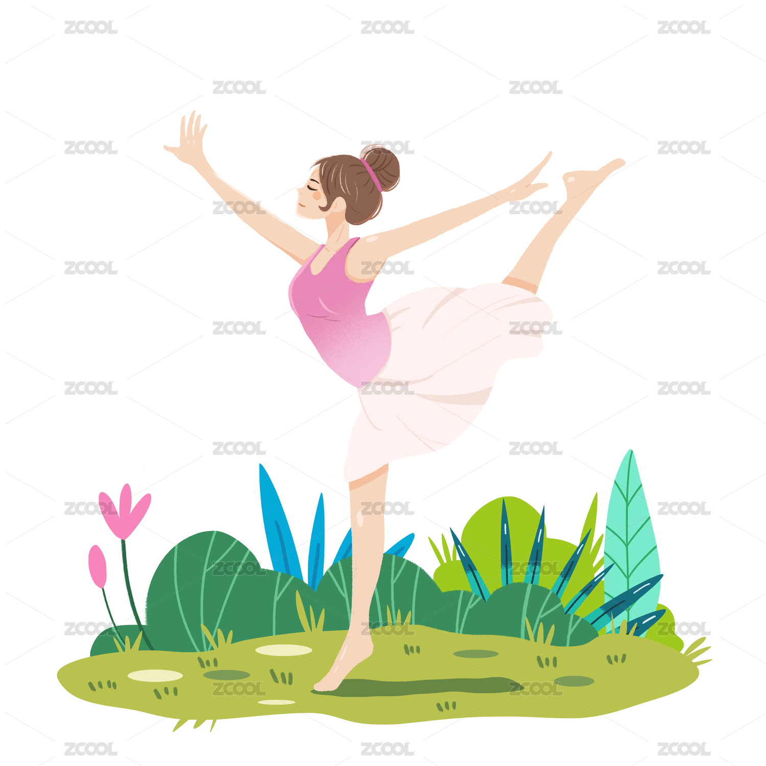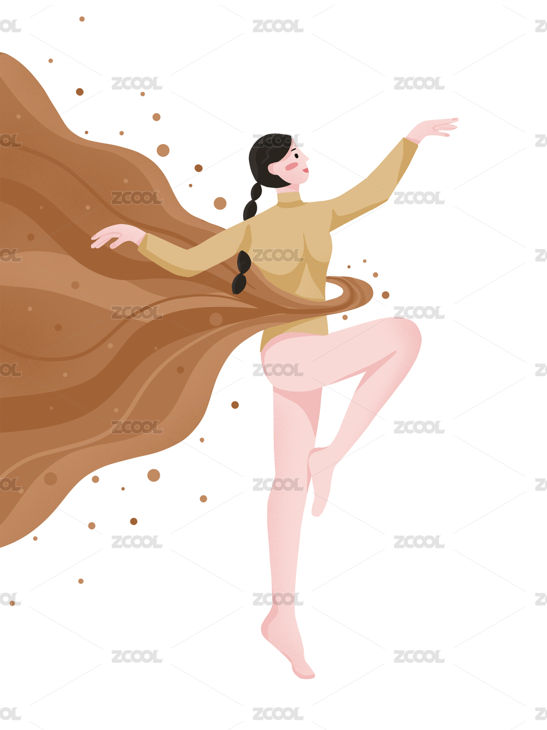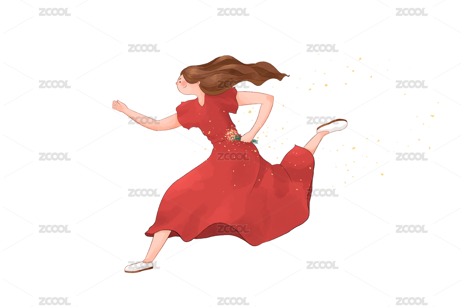 手拿鲜花快乐奔跑的红色裙子女生插画