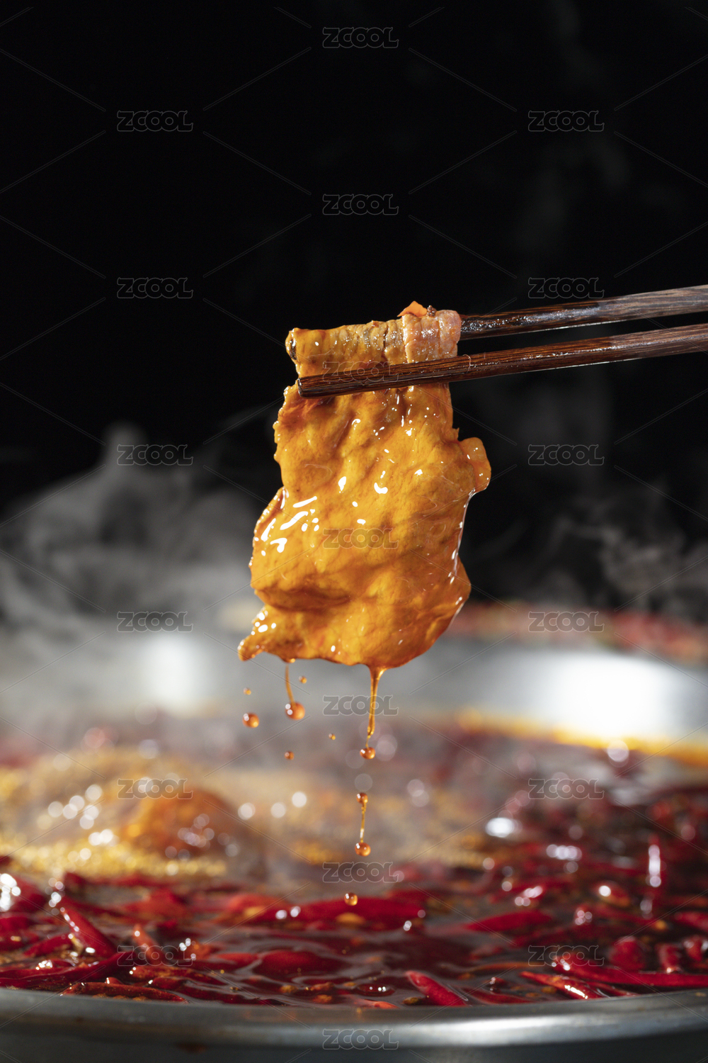 正在烫汤锅重庆火锅菜品牛肉片