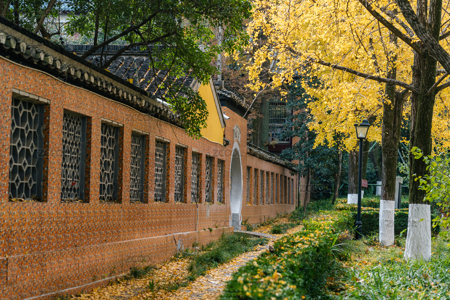 江苏省盐城市大纵湖银杏叶园林古建筑环境