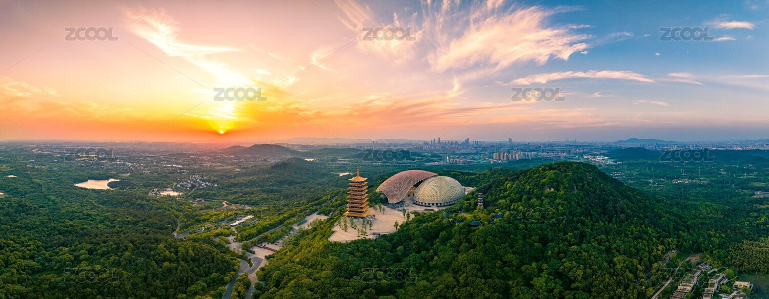 南京牛首山日落航拍全景