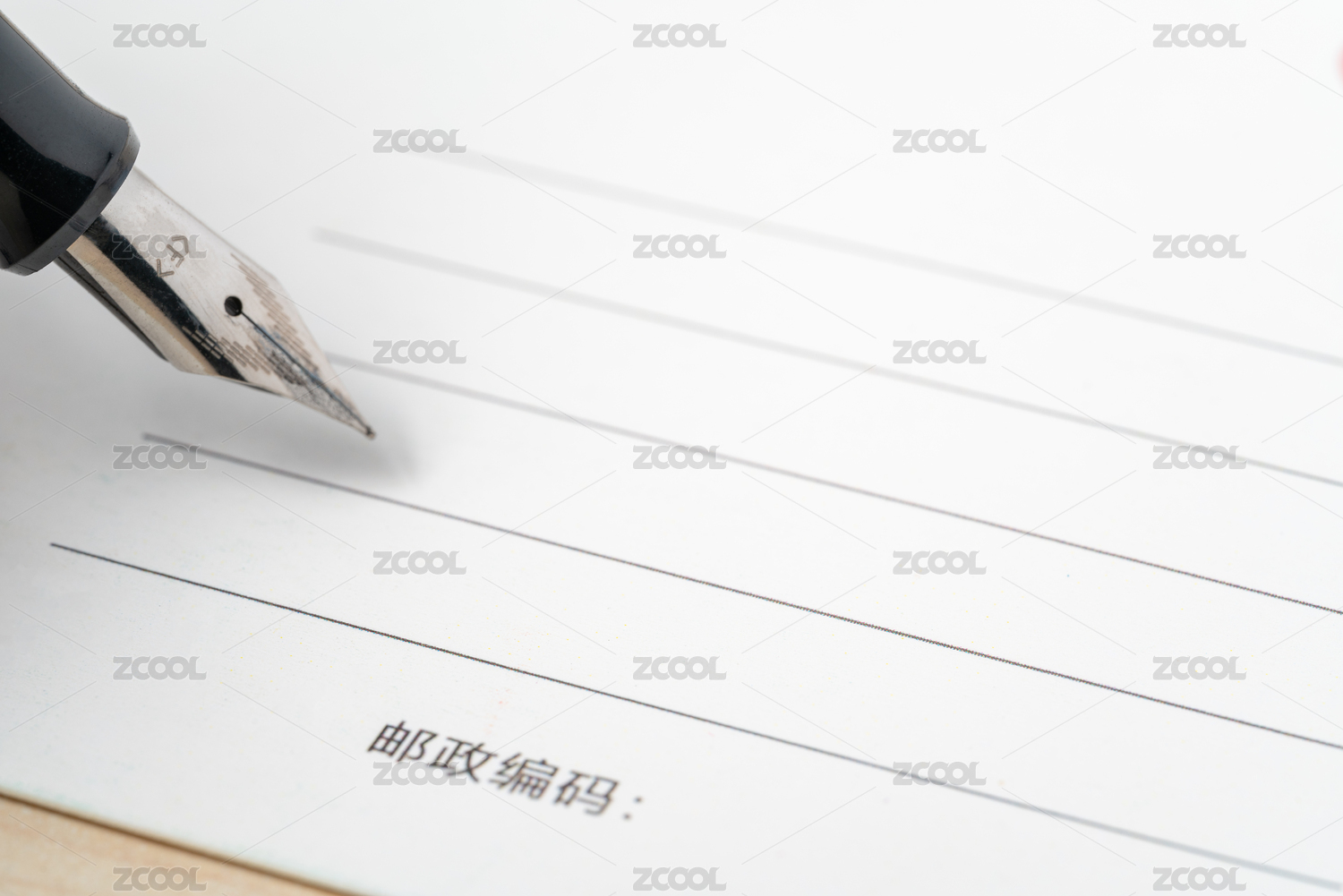 手握着钢笔在蓝色背景的纸上书写励志话语