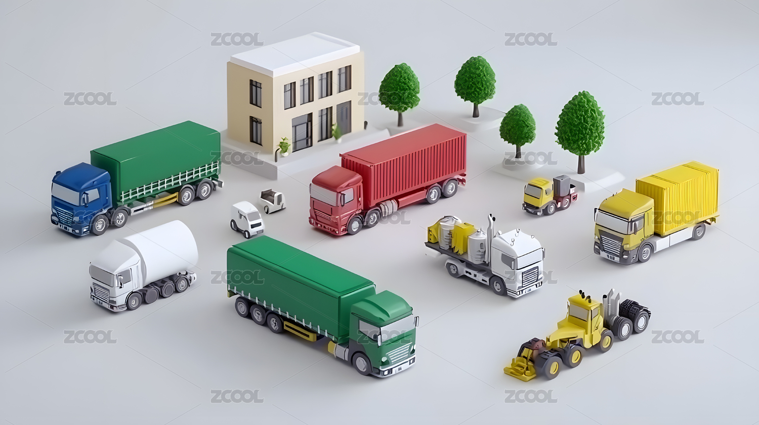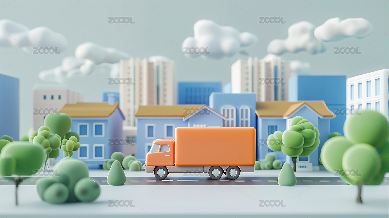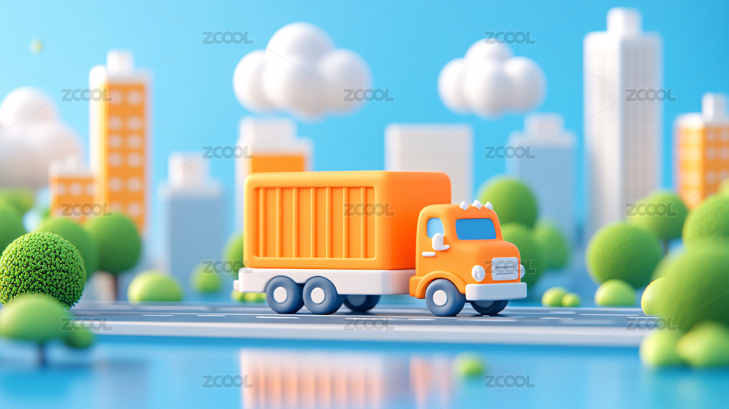 3D卡车货车运输车辆交通驾驶三维渲染插图